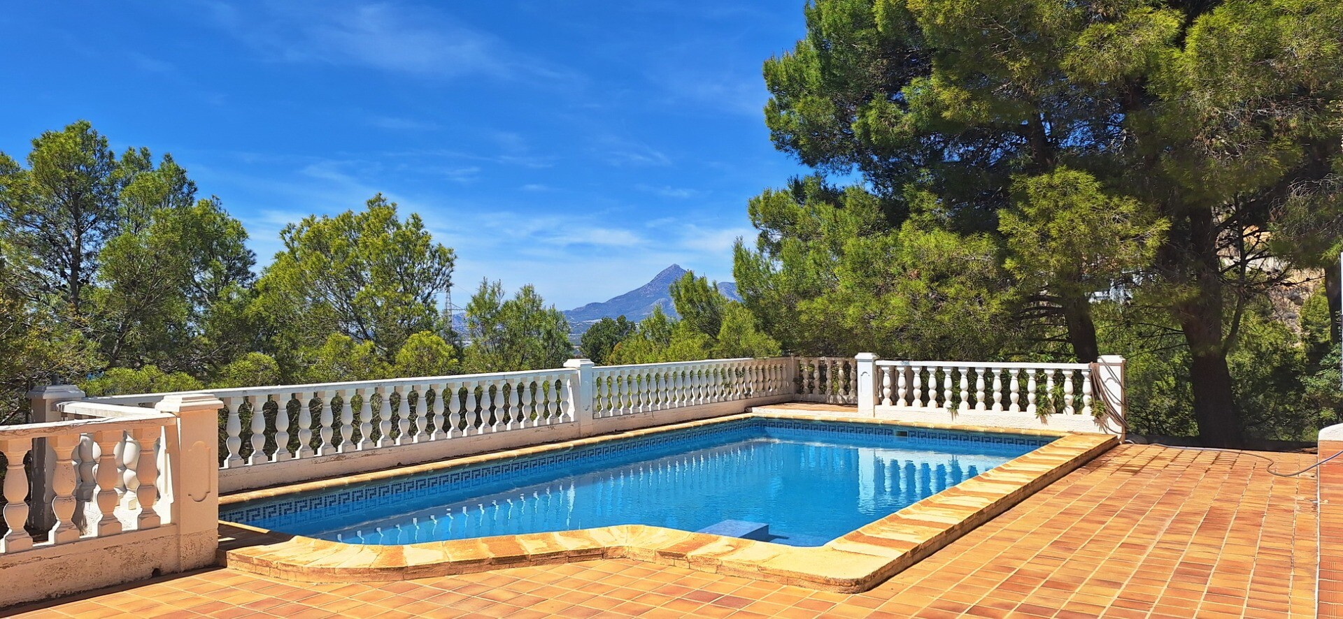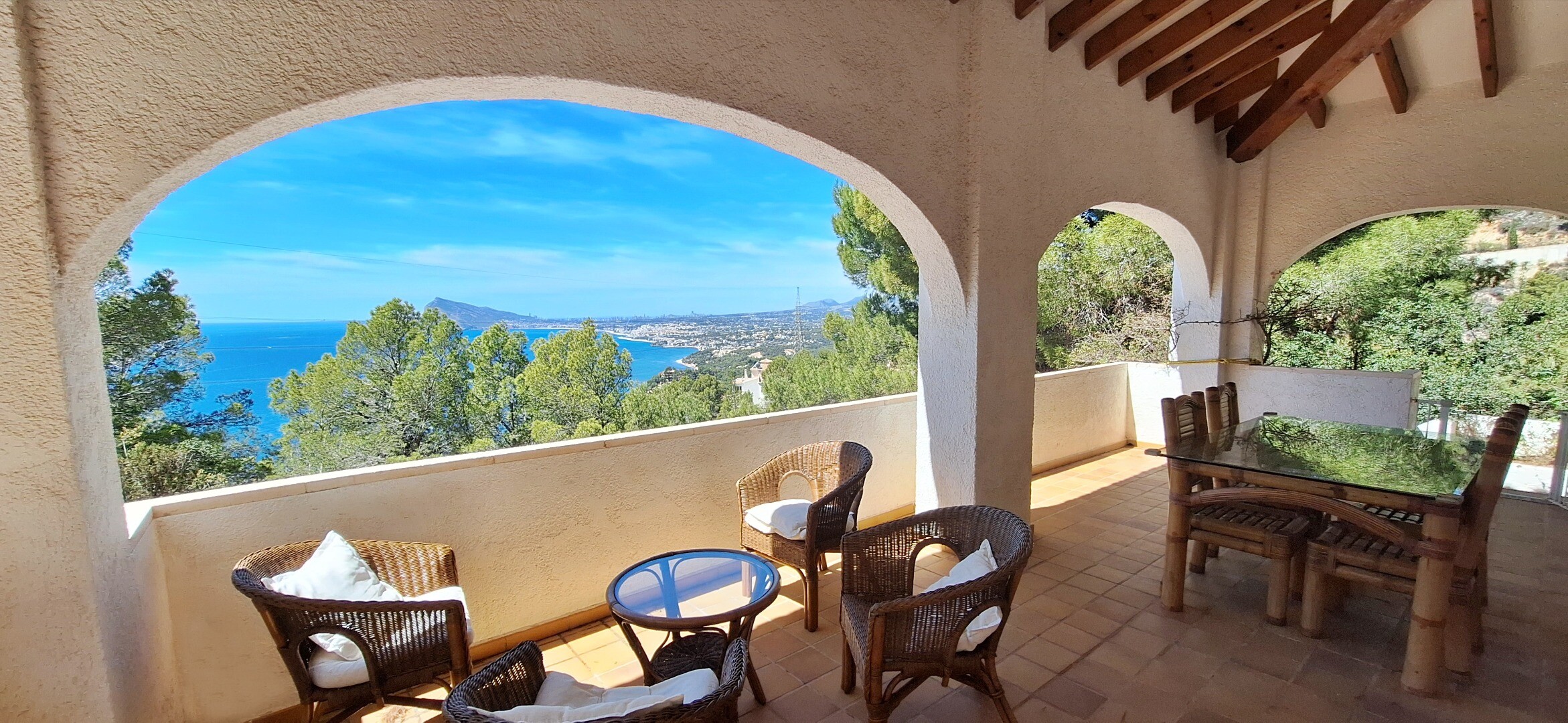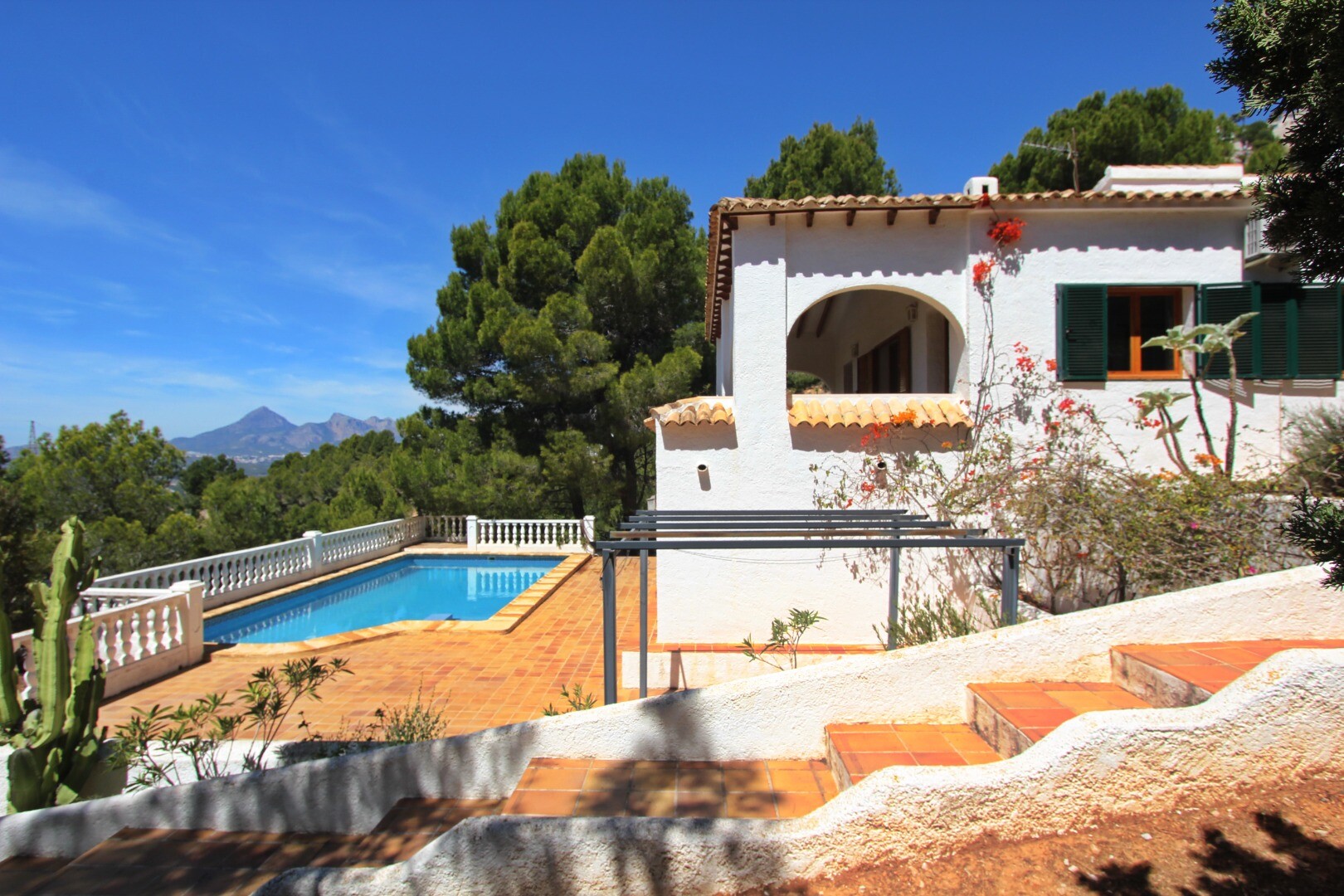 Amplasată în mult căutata urbanizare închisă din Altea Hills, cu securitate nonstop, veți găsi vila tradițională în stil mediteranean cu cazare separată pentru oaspeți (dormitor și baie). Locație excelentă pentru viață pe tot parcursul anului datorită microclimei și garantat 320 de zile de soare pe an! Proprietatea beneficiaza de foc deschis in lou...nge pentru noptile confortabile de iarna si aer conditionat pentru noptile de vara linistite! Înconjurată de frumusețe naturală și vederi minunate la mare, această proprietate are un potențial mare! Piscina privată, depozit mare și garaj privat mare.