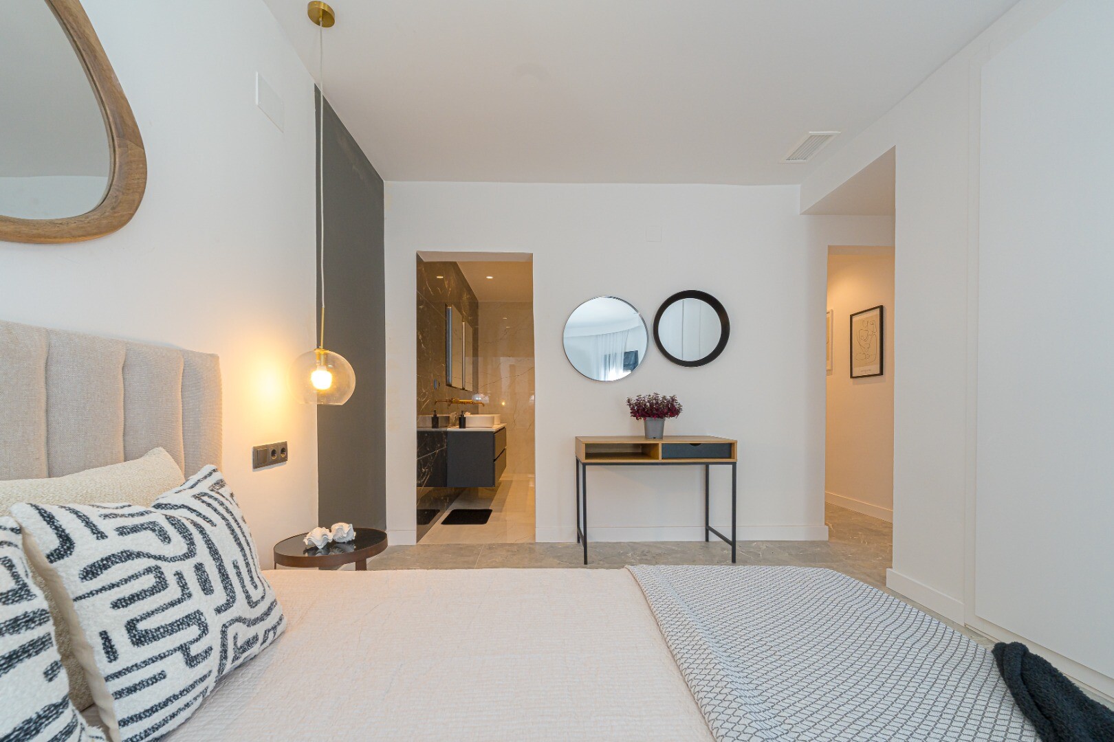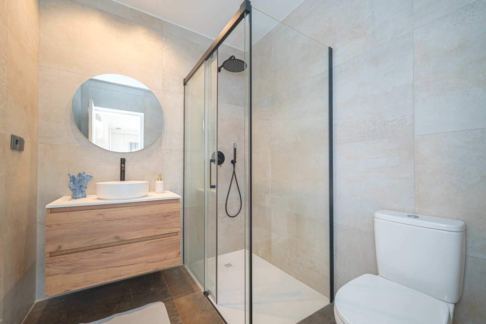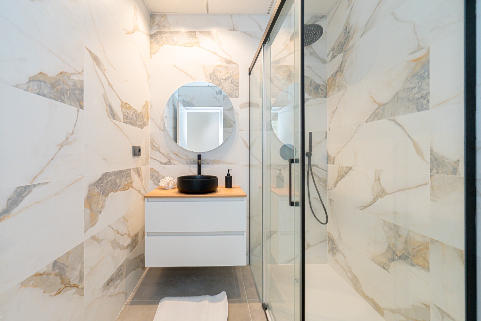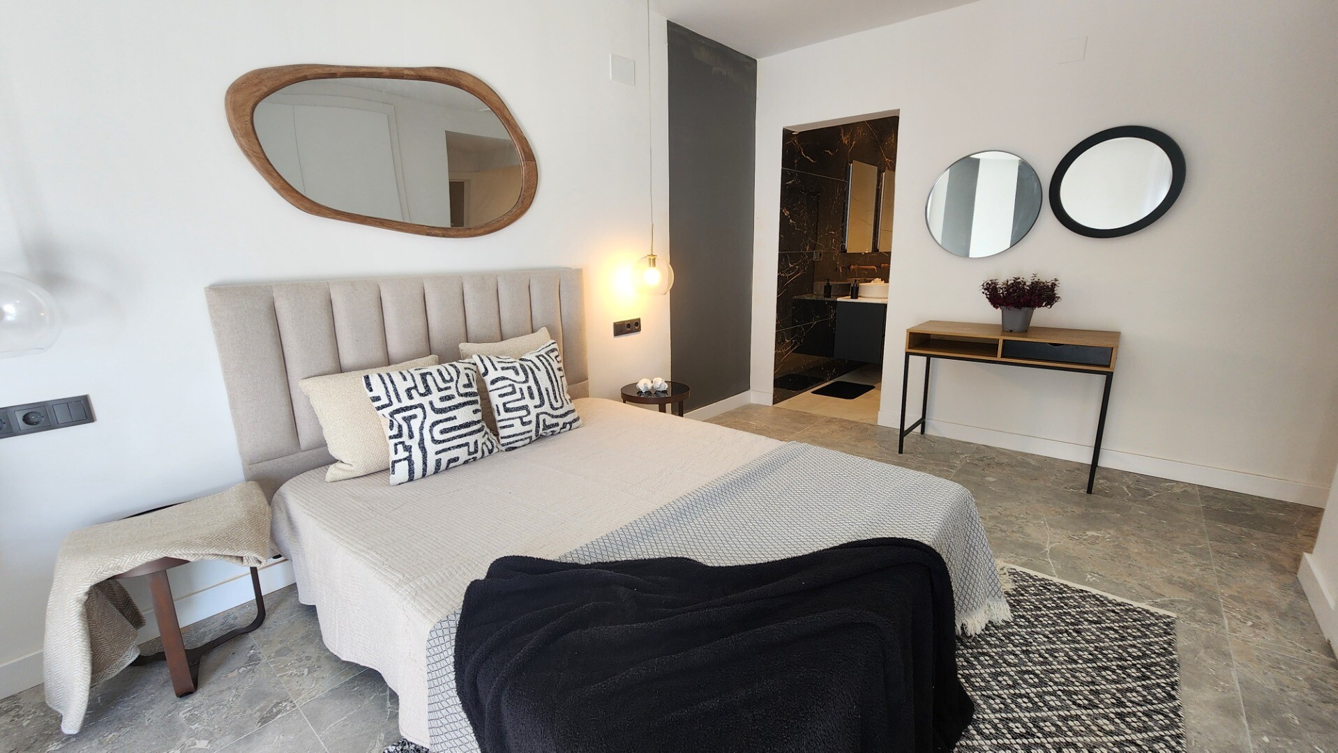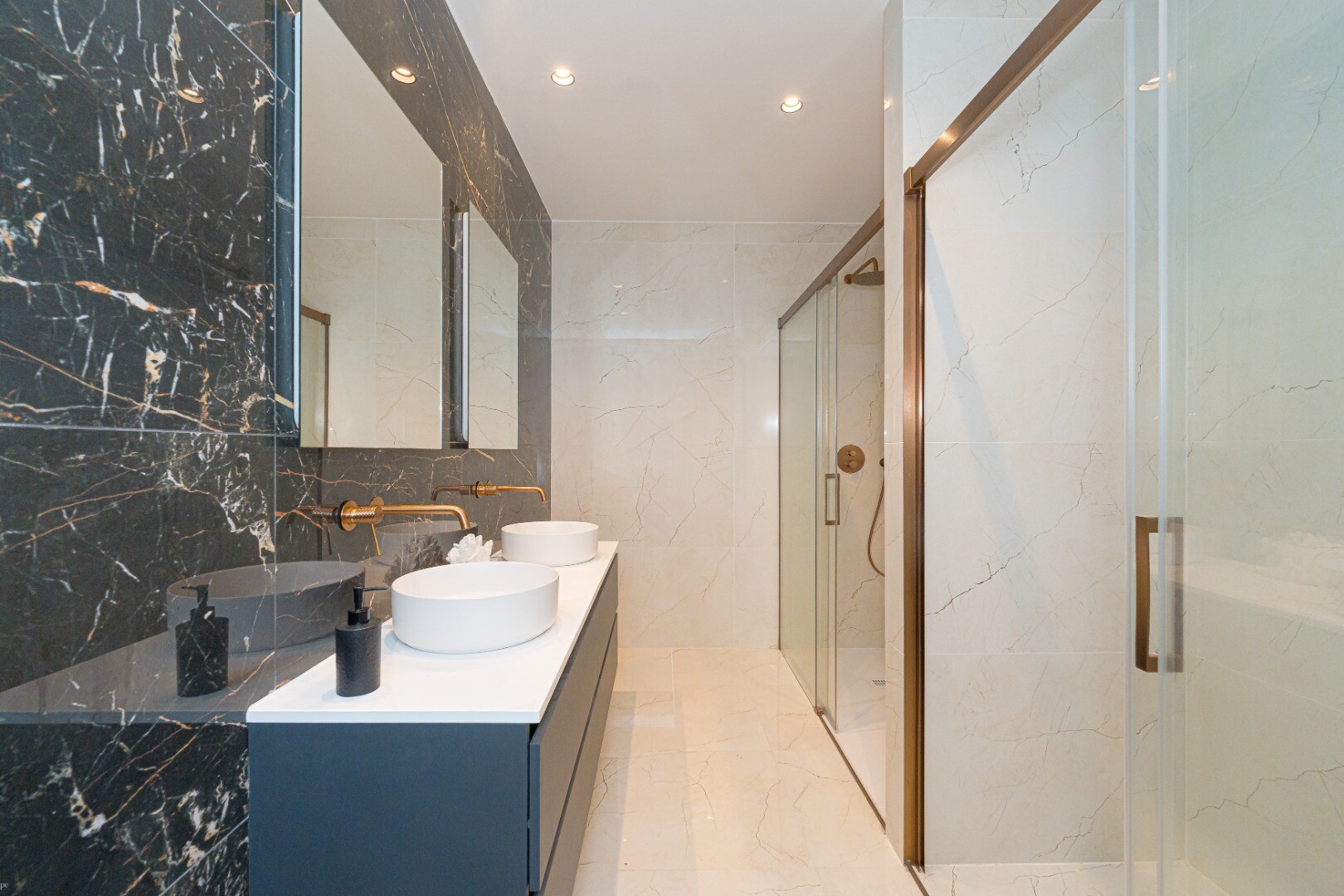 Etajul inferior găzduiește zona de dormit cu patru dormitoare duble spațioase, dintre care două au baie proprie, precum și două băi complete suplimentare. Toate băile au fost renovate cu materiale de înaltă calitate și dotate cu dușuri spațioase, design modern și finisaje impecabile.