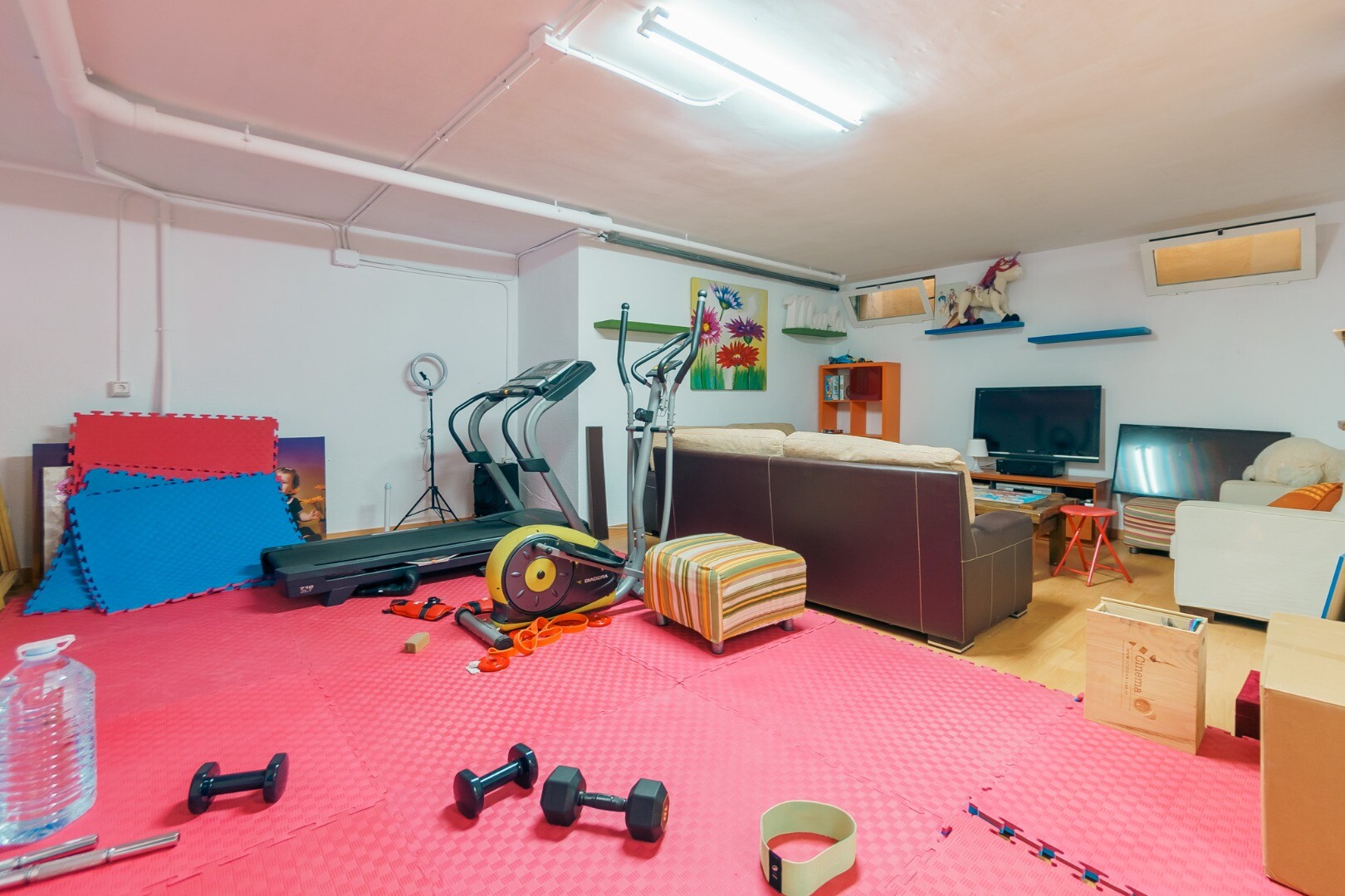 Un parter substanțial de aproximativ 100 m² oferă o versatilitate excepțională, fiind perfect potrivit pentru un salon de cinema privat, un birou executiv acasă, o zonă de wellness sau o sală de sport personalizată.