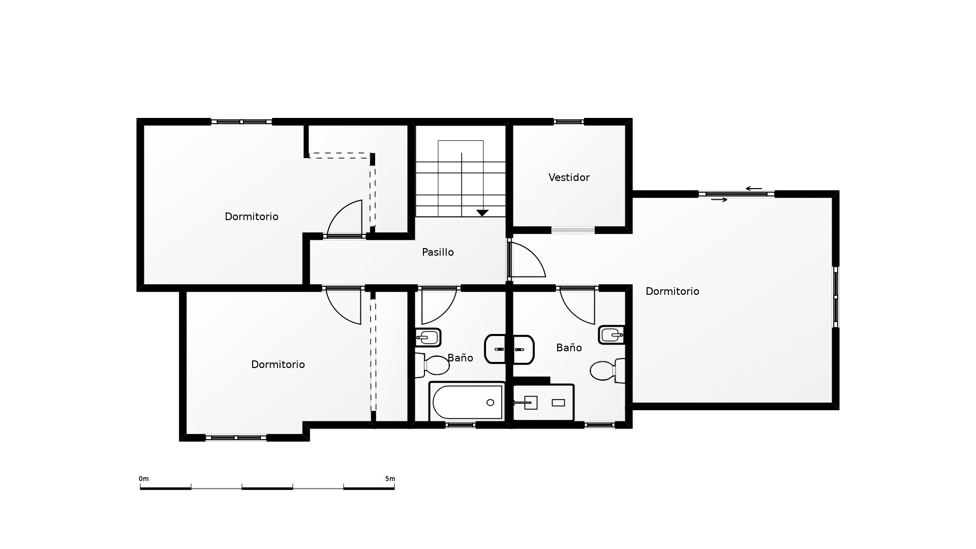 Nivelul superior este dedicat odihnei și intimității, fiind evidențiat de o elegantă suită matrimonială cu dressing, o baie proprie luxoasă și un balcon privat. Două dormitoare suplimentare, fiecare cu dulapuri încorporate, și o baie frumos amenajată completează acest etaj.