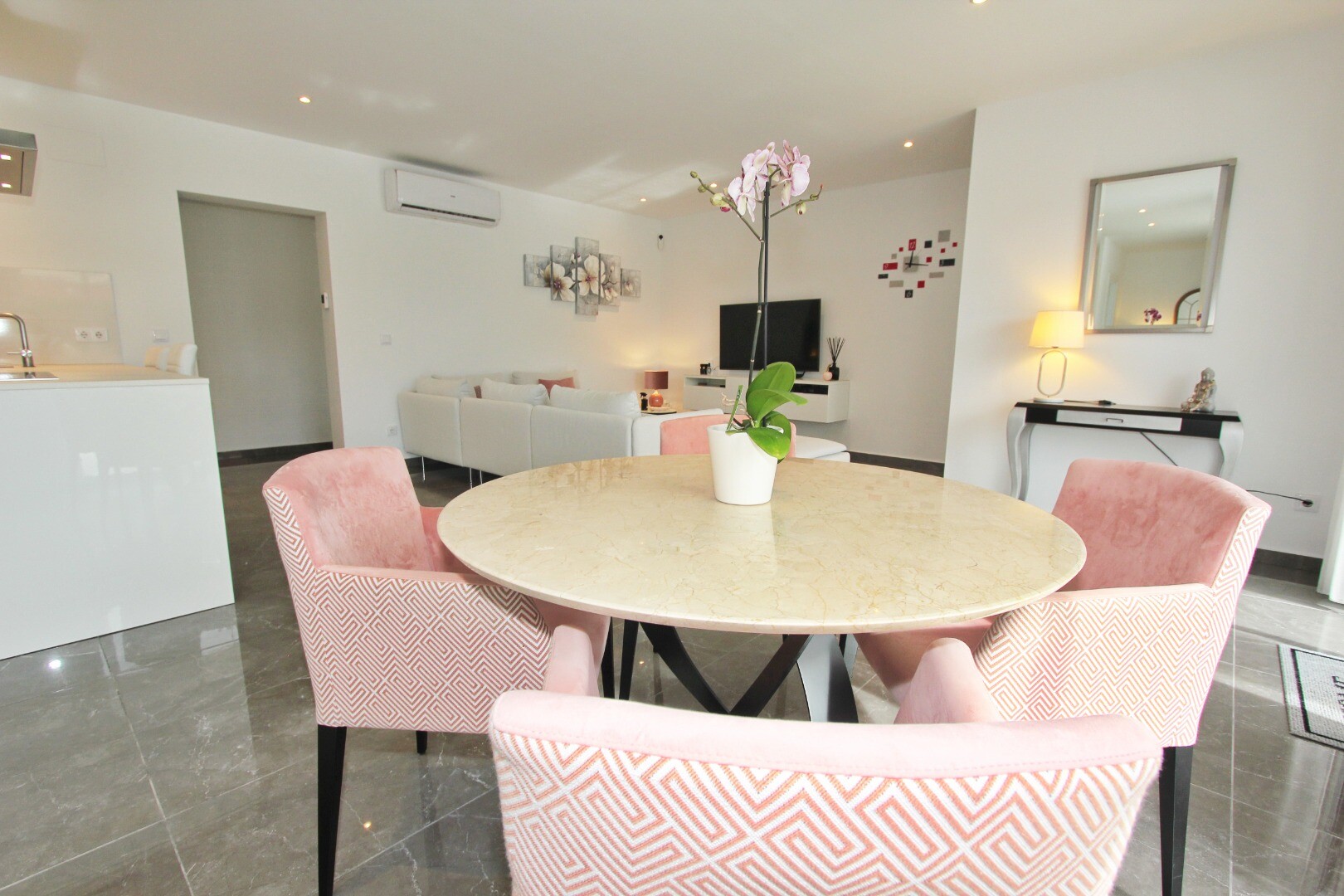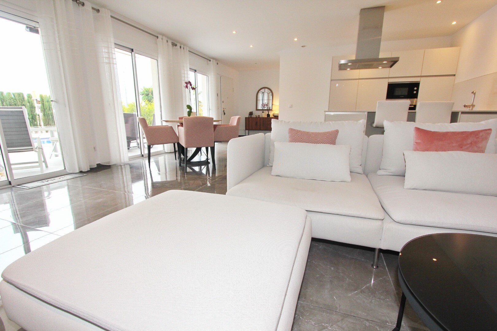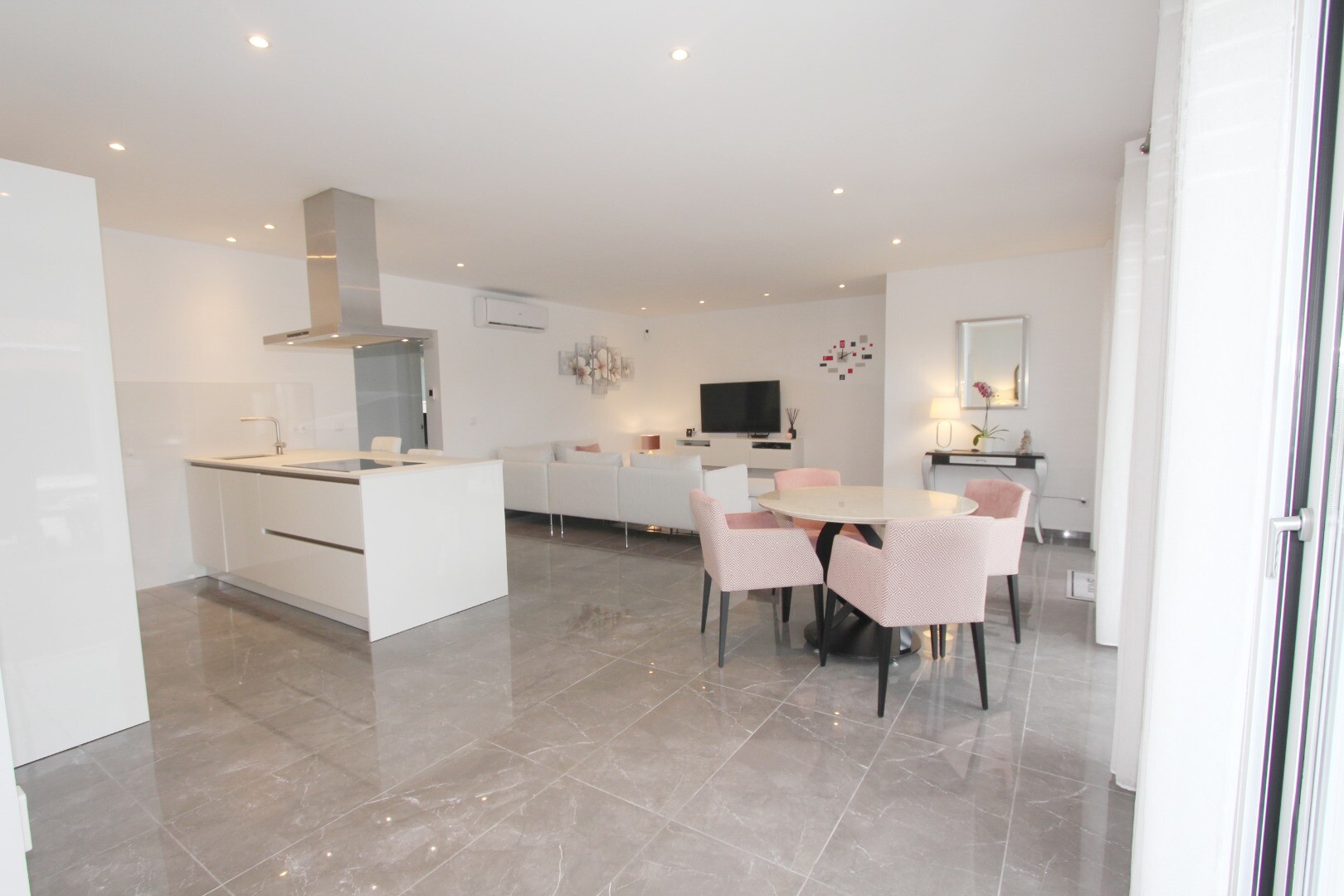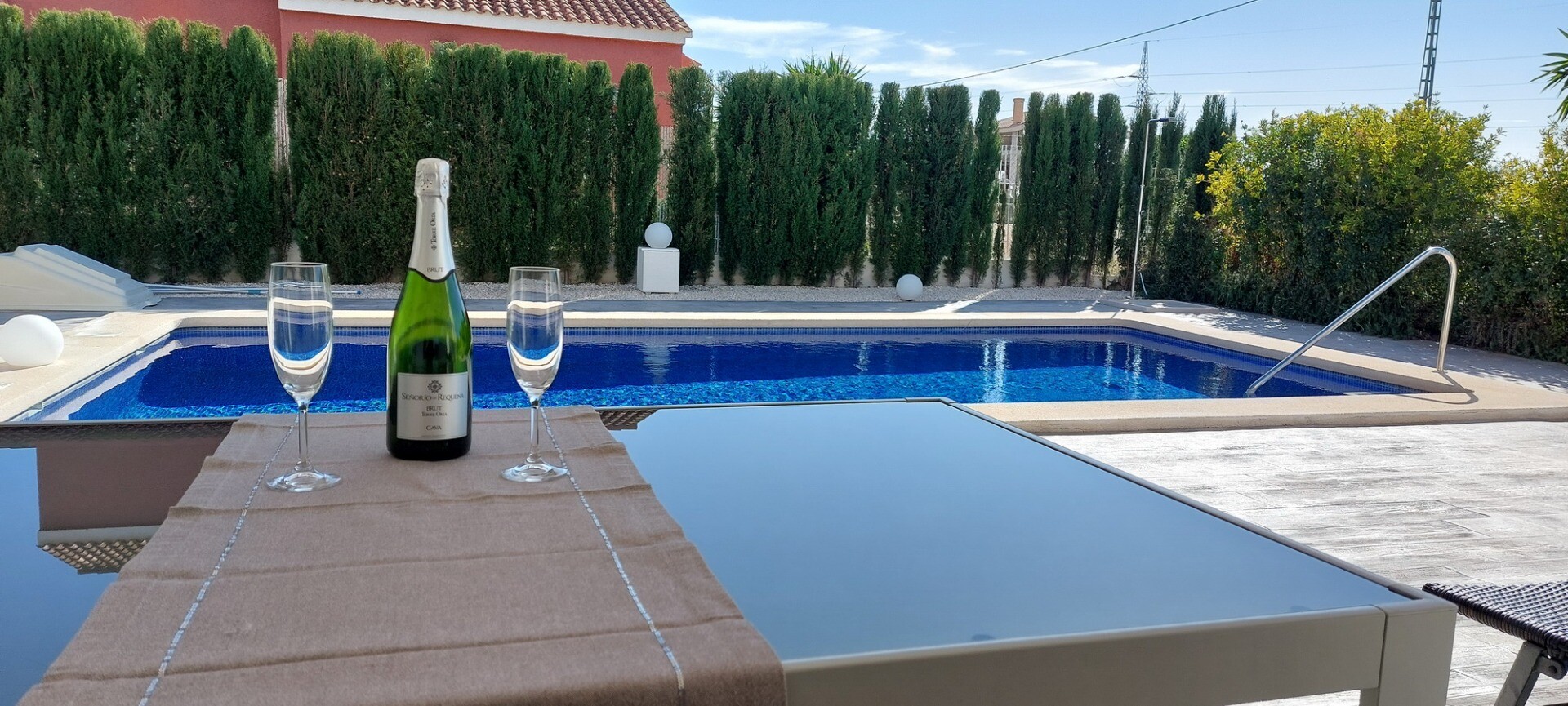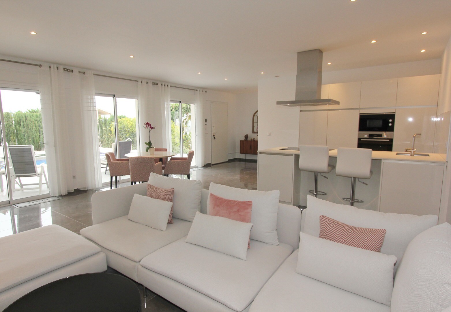 Bun venit în sanctuarul tău rural! Această vilă elegantă pe un singur nivel se mândrește cu finisaje moderne elegante și cu o abundență de lumină naturală care dansează prin ferestrele generoase din podea până în tavan. Bucurați-vă de bucătăria gourmet, un refugiu pentru bucătari aspiranți, și savurați cafeaua de dimineață pe terasa privată de lâng...ă piscină, unde priveliștile asupra grădinii și a piscinei se desfășoară în fața ochilor dumneavoastră. Amplasată într-un cătun rural, această vilă privată este poarta ta către un stil de viață liniștit, înconjurată de propria ta grădină mare, cu vegetație luxuriantă și pomi fructiferi, un loc ideal pentru a lua masa în aer liber sau a savura cocktailuri lângă piscină! Orașul Mutxamel este la doar 7 minute de mers cu mașina, iar plaja la 10 minute. Mutxamel și Busot au un sentiment de „sat spaniol” și se mândresc cu multe magazine locale de artizanat, supermarketuri de marcă și piețe săptămânale de fructe și legume!