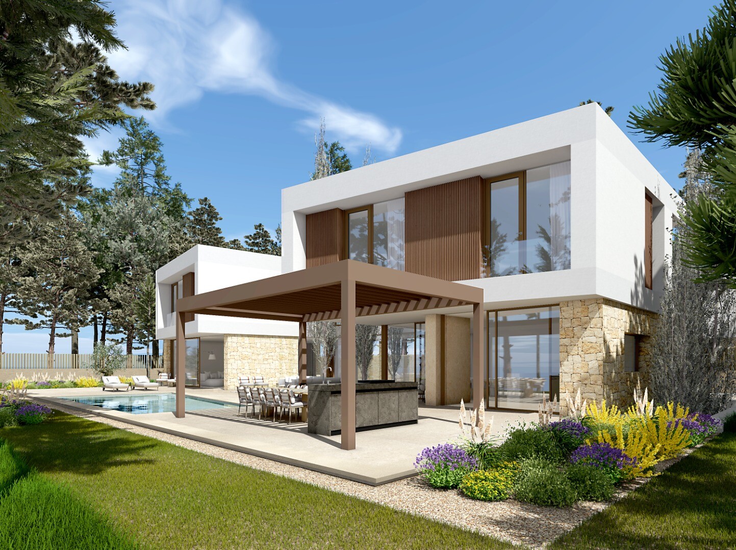12 vile luxoase și moderne în stil contemporan, situate la doar 100 de metri de golfurile și plajele din Las Rotas din Denia - sunetul valurilor care bat ușor malul poate fi auzit din fiecare dintre cele 12 vile!
