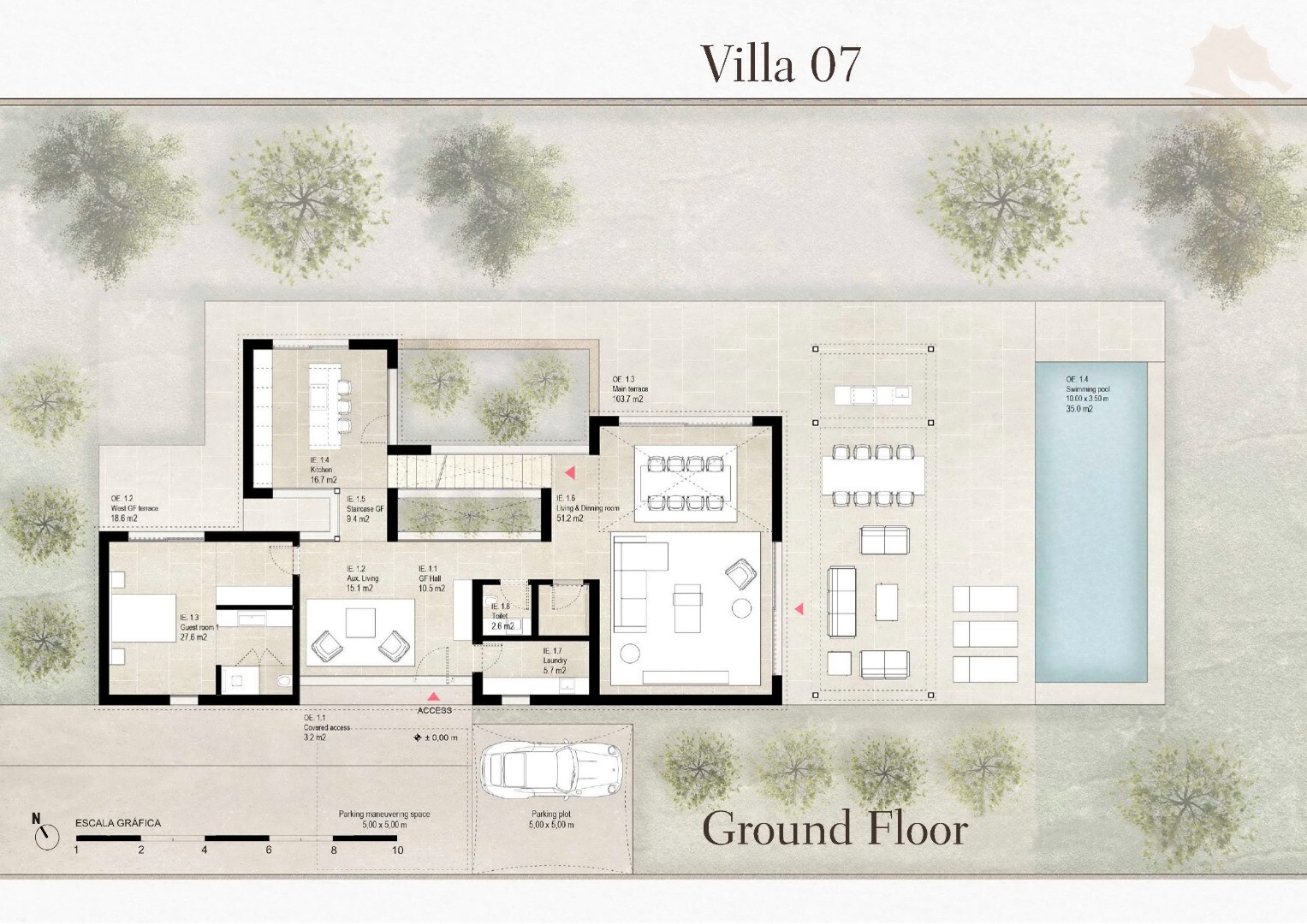 Această comunitate luxoasă se armonizează cu împrejurimile sale naturale uimitoare pentru a oferi rezidenților săi acces direct la ofertele bogate ale zonei. De la minunile ascunse din Cova Tallada la fairway-urile verzi luxuriante ale Golfului La Sella, din apropierea vieții marine vibrante din Rezervația Marina Cabo de San Antonio și peisajele fastuoase ale Parcului Natural El Montgó.