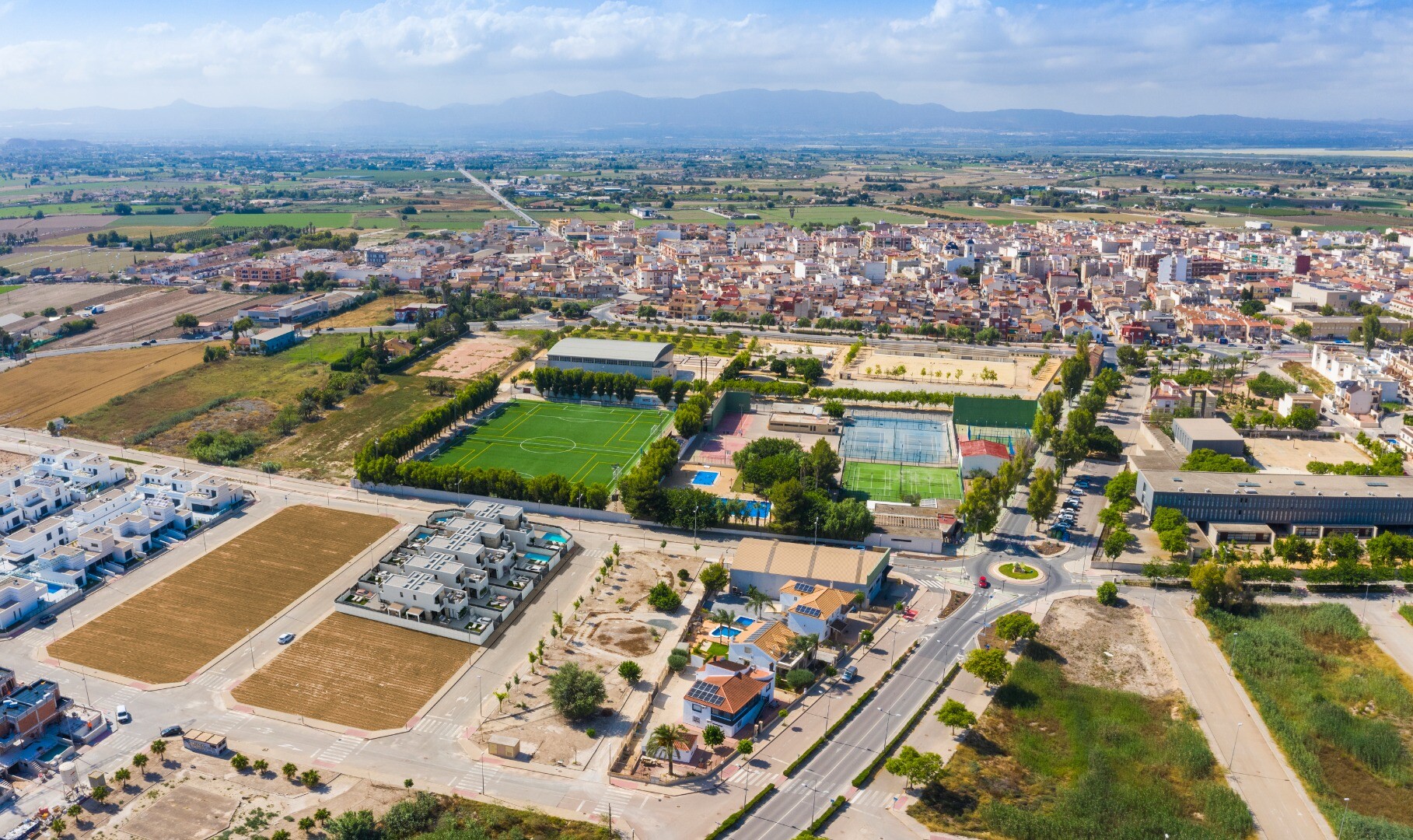 Acest pret include aer conditionat, panouri fotovoltaice de 1,5 Kw, piscina 6,8x2,5 m, iluminat interior si exterior, sistem anticalcar, filtru apa baut in bucatarie, jaluzele electrice si bai complet finisate. Prima casă va fi livrată în iunie 2023, ultima în aprilie 2024.