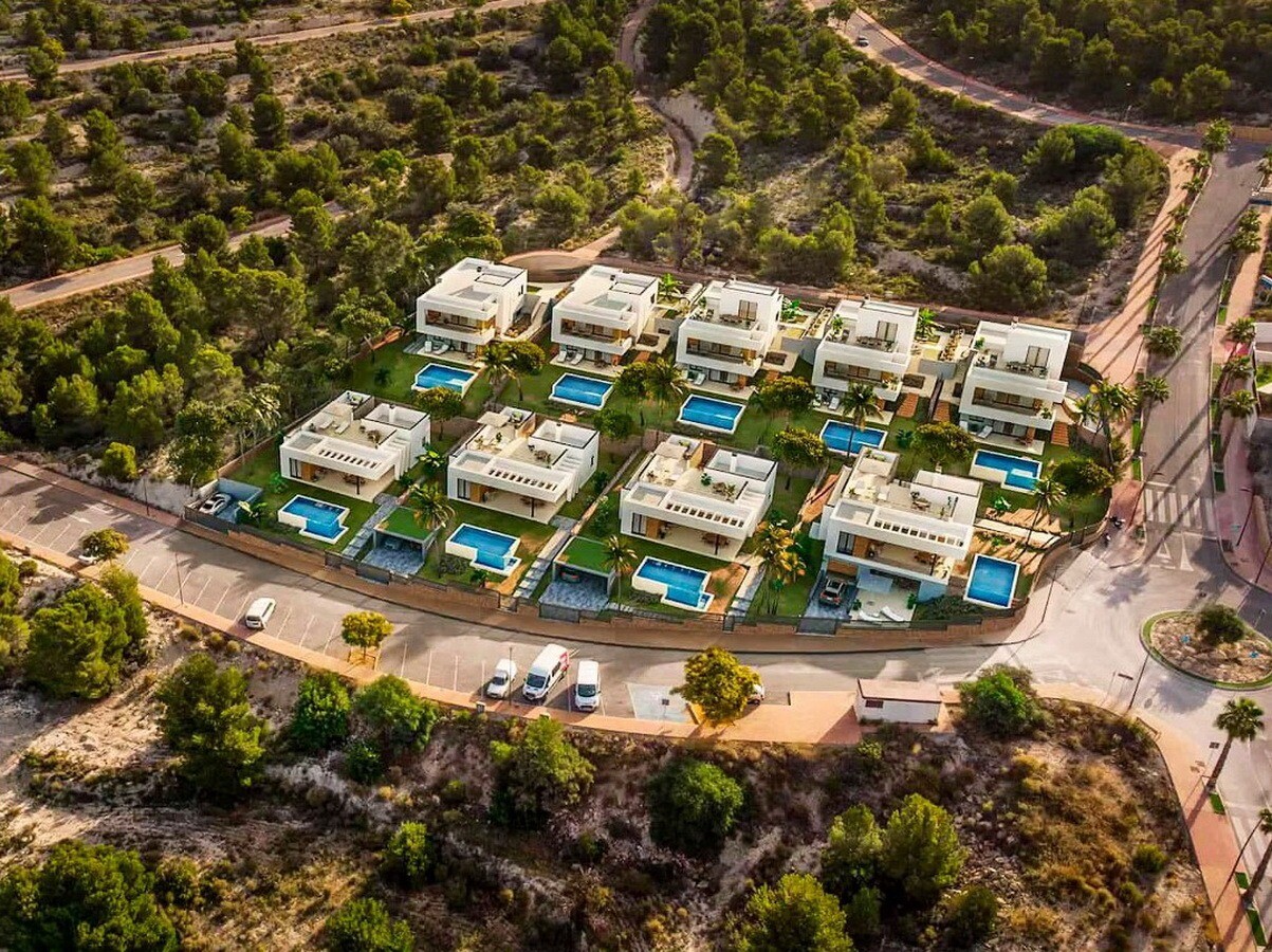Situate pe Costa Blanca, sunt 9 vile independente de 2 etaje cu același design și confort, cu o distribuție diafană și detalii extreme. Au 3 dormitoare -unul la parter- și 3 băi, precum și o grădină și piscină privată și un garaj mare cu 2 locuri.