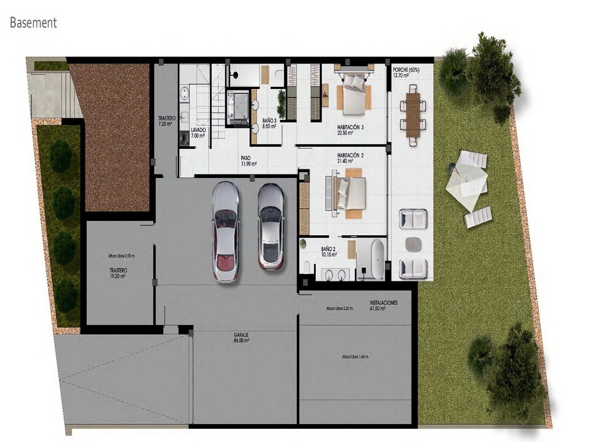 Un complex de 11 vile unice și diferite, cu parcele independente de până la 622 m2, o suprafață totală construită de până la 422 m2 și o piscină privată.