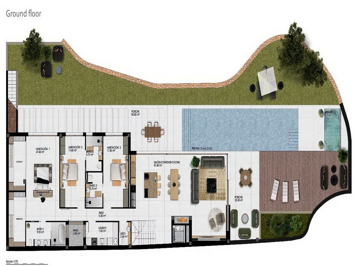 Un complex de 11 vile unice și diferite, cu parcele independente de până la 622 m2, o suprafață totală construită de până la 422 m2 și o piscină privată.