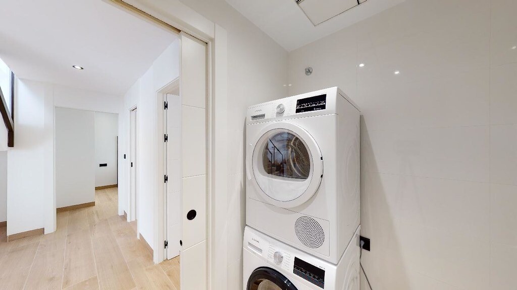 *Plită ceramică, frigider-congelator, cuptor cu microunde, cuptor, mașină de spălat vase, *mașină de spălat rufe și uscător