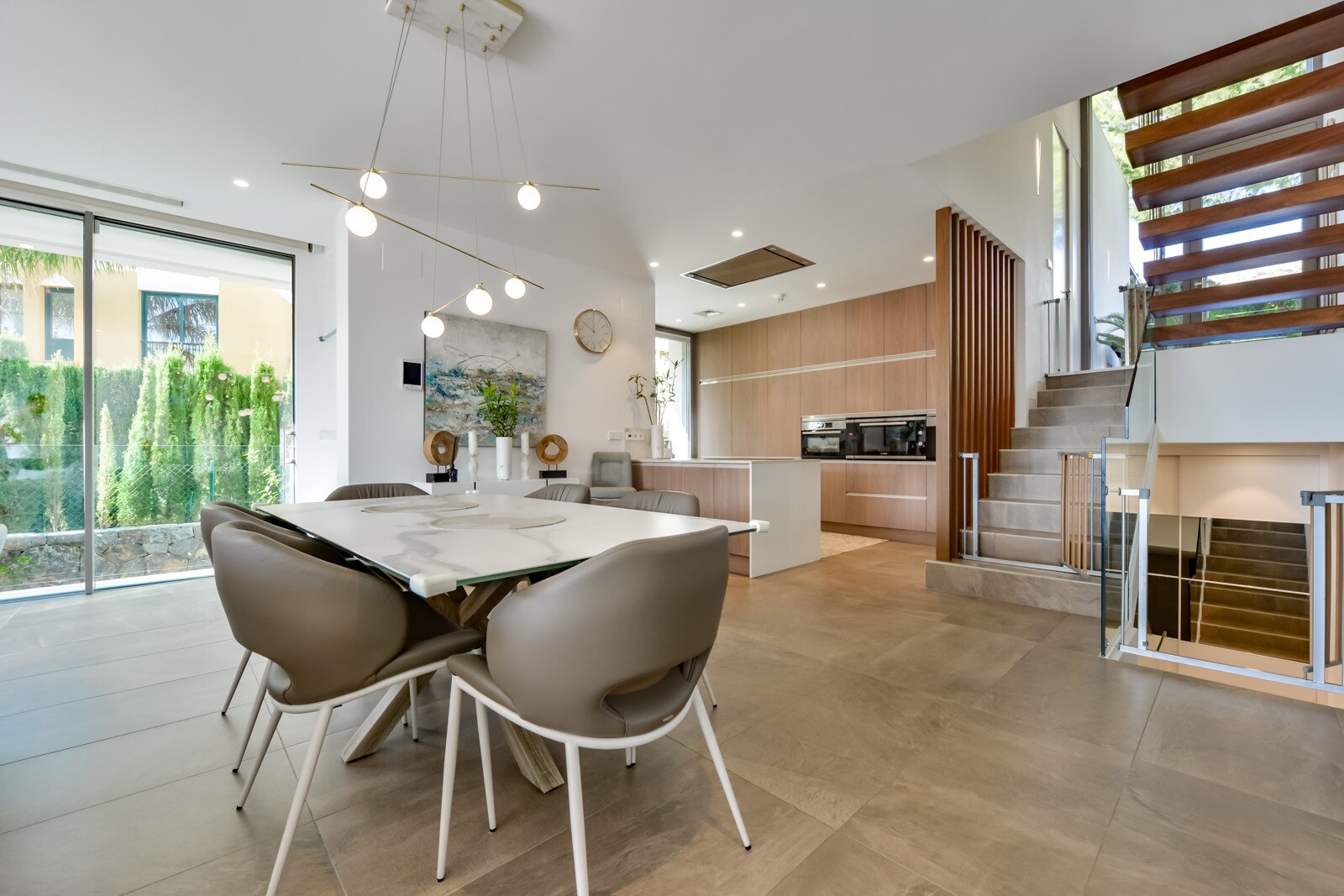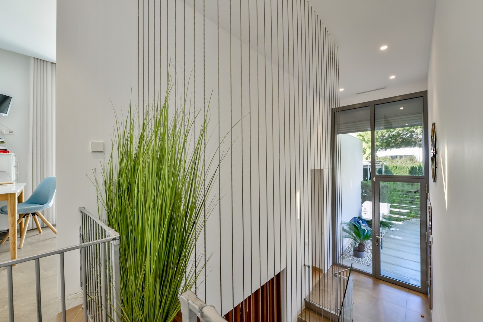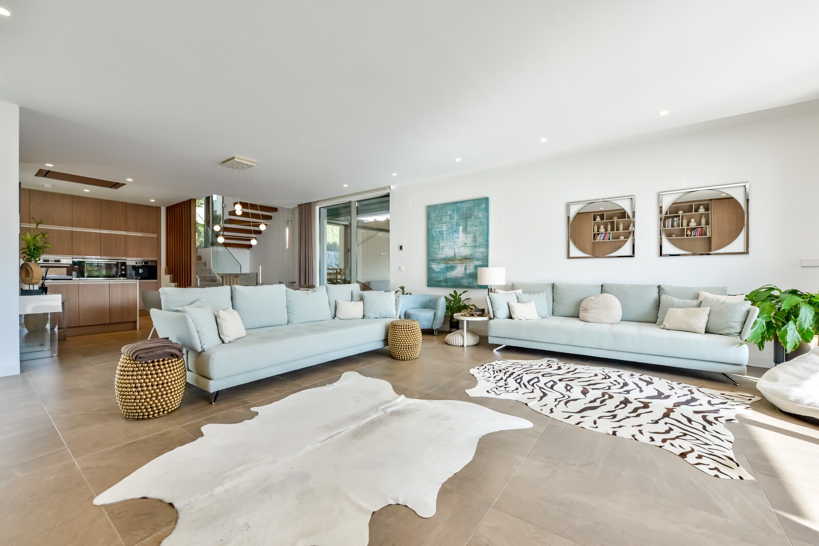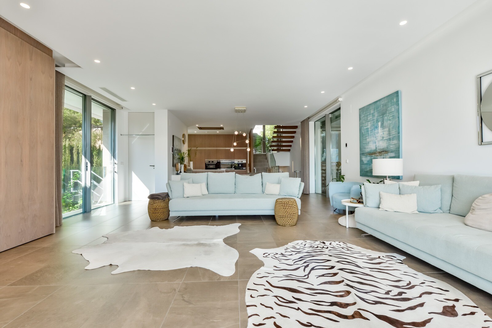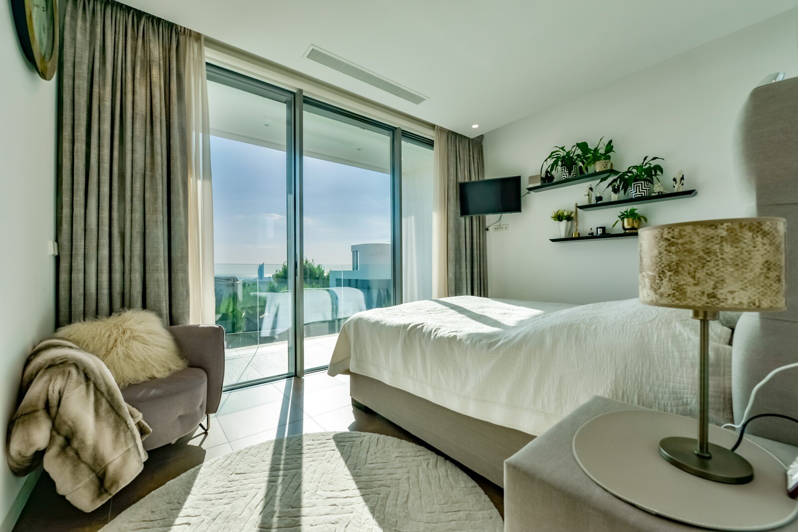 O casă magnifică într-o dezvoltare de prestigiu, cu absolut totul pentru a trăi sau a se relaxa într-o locație privilegiată. Terenul de 800 m2 este accesibil printr-o parcare acoperita si garaj. Există posibilitatea achiziționării vilei cu un teren de 700 m2, cu grădină alăturată cu pomi fructiferi și centru sportiv pentru copii, caz în care vila a...r costa 1.820.000 euro. Casa de 379 m2 are: La parter. un living mare cu acces direct la piscina si o bucatarie spatioasa in plan deschis, confortabila pentru proprietarii casei. De la acest etaj se poate accesa piscina si terasa/bucatarie acoperita de vara, acoperita pe laterale cu stofa Iarna devine un loc confortabil si poate fi folosit si pentru gratare. Urcând scările interioare până la etajul superior vedem dormitorul matrimonial cu vedere deschisă la mare, dotat cu baie proprie, dressing și terasă privată. Există, de asemenea, 2 dormitoare suplimentare cu dulapuri, o terasă mare și o baie. Subsolul dispune de lumina naturala care inunda terasa englezeasca si scarile care duc catre teren, sunt doua dormitoare mari si spatiu pentru o sala de sport cu sauna si baie. Casa dispune de automatizare a locuintei, incalzire in pardoseala, aer conditionat conductibil si jaluzele automate. Sunt panouri solare pe acoperișul casei și în parcare.