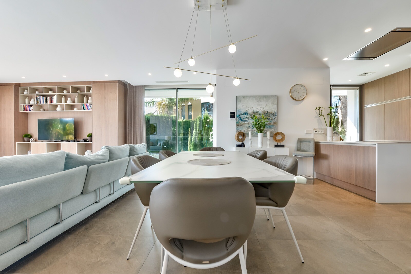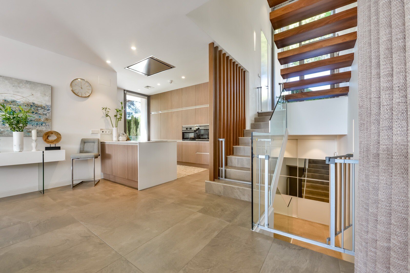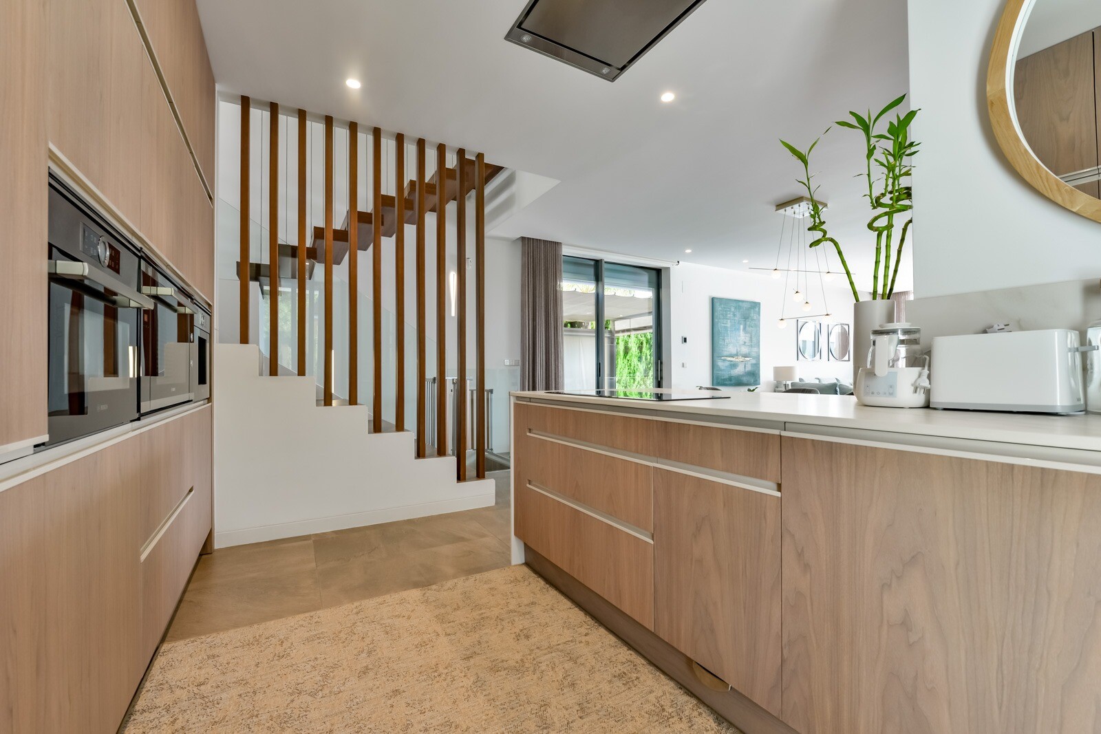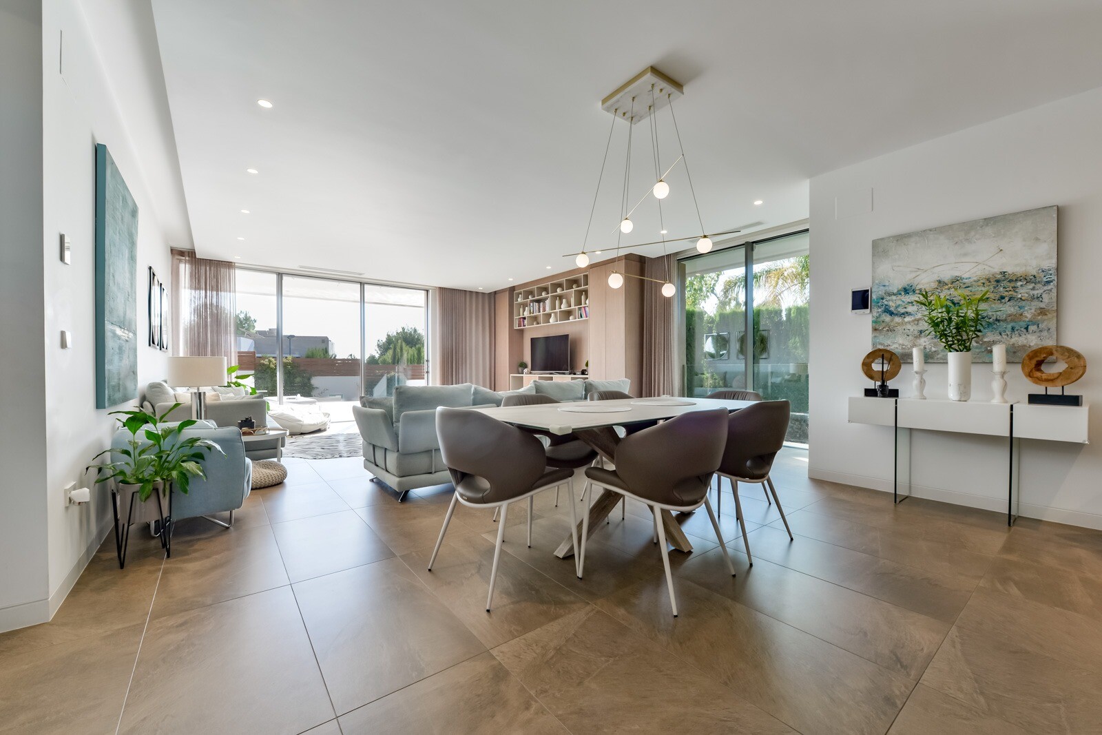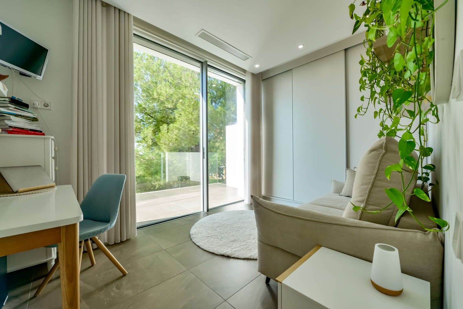 O casă magnifică într-o dezvoltare de prestigiu, cu absolut totul pentru a trăi sau a se relaxa într-o locație privilegiată. Terenul de 800 m2 este accesibil printr-o parcare acoperita si garaj. Există posibilitatea achiziționării vilei cu un teren de 700 m2, cu grădină alăturată cu pomi fructiferi și centru sportiv pentru copii, caz în care vila a...r costa 1.820.000 euro. Casa de 379 m2 are: La parter. un living mare cu acces direct la piscina si o bucatarie spatioasa in plan deschis, confortabila pentru proprietarii casei. De la acest etaj se poate accesa piscina si terasa/bucatarie acoperita de vara, acoperita pe laterale cu stofa Iarna devine un loc confortabil si poate fi folosit si pentru gratare. Urcând scările interioare până la etajul superior vedem dormitorul matrimonial cu vedere deschisă la mare, dotat cu baie proprie, dressing și terasă privată. Există, de asemenea, 2 dormitoare suplimentare cu dulapuri, o terasă mare și o baie. Subsolul dispune de lumina naturala care inunda terasa englezeasca si scarile care duc catre teren, sunt doua dormitoare mari si spatiu pentru o sala de sport cu sauna si baie. Casa dispune de automatizare a locuintei, incalzire in pardoseala, aer conditionat conductibil si jaluzele automate. Sunt panouri solare pe acoperișul casei și în parcare.
