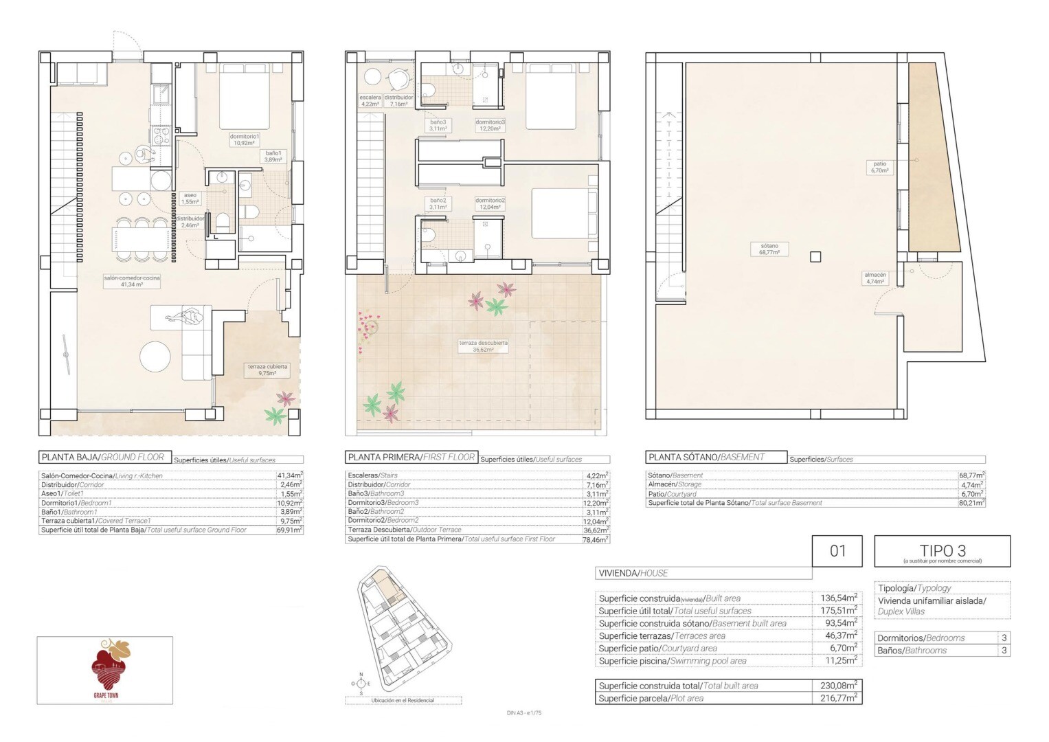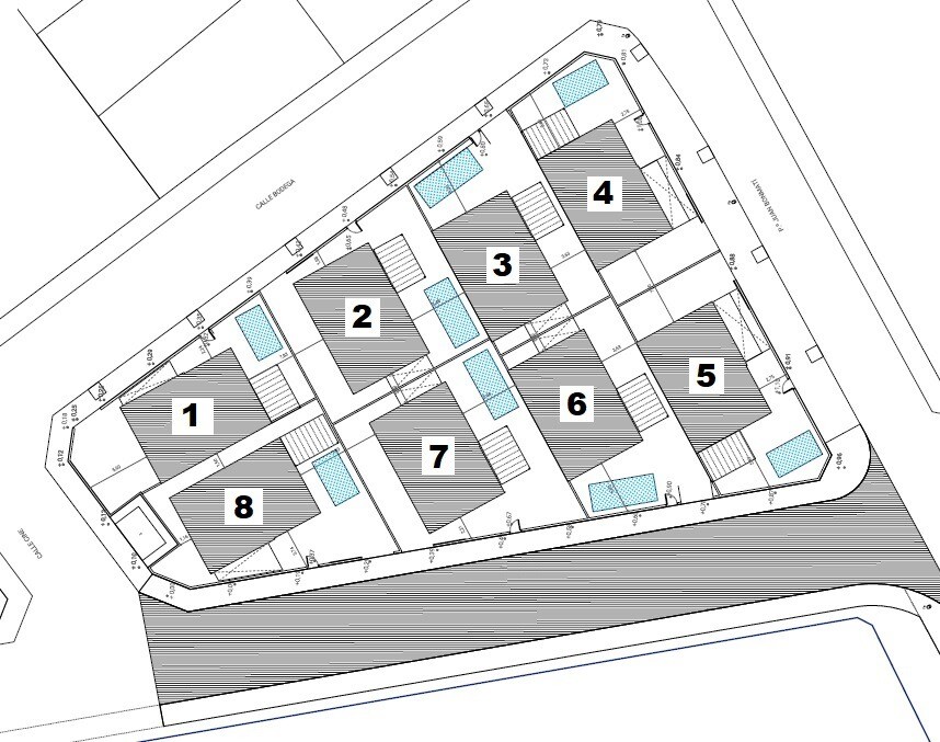 Mic teren de 8 vile decomandate pe teren privat, compus din doua etaje si un subsol cu patio englezesc. Bucătărie deschisă, living și sufragerie, toaletă pentru oaspeți și dormitor cu baie privată, la parter. Doua dormitoare cu baie proprie si terasa mare de 36m2, la primul etaj. Grădină privată cu piscină și zonă de grătar. Loc de parcare privat... in cadrul parcelei. Priză de încărcare pentru mașini electrice. Acces privat individual din stradă. Izolatie termica si fonica in conformitate cu noul Decret Tehnic de Construire. Tamplarie exterioara PVC alb si obloane. Tâmplărie interioară și fronturi de dulap din panouri netede lăcuite alb. Băile și bucătăriile placate de la podea până la tavan cu gresie/gres de calitate superioară. Instalatii sanitare si robinete de calitate superioara, toaleta cu rezervor incorporat. Gresie portelanata sau parchet laminat in casa. Usa de intrare armata. Bucătărie complet utilată, dulapuri superioare și inferioare și blat de lucru din granit sau aglomerat sintetic (silestone sau similar). Instalatie electrica conform R.E.B.T. (Regulamente Electrotehnice de Joasă Tensiune) cu electrificare ridicată (9,2 KW). Tencuiala netedă pe tavane, tavane detașabile în băi cu aer condiționat. Sistem de aer conditionat canalizat (cu pompa de caldura) la parter si etaj. Sistem de ventilație forțată cu recuperare de căldură. O bună ventilație a locuințelor asigură o bună calitate a aerului interior. Ventilația forțată cu recuperare de căldură îmbunătățește bunăstarea și confortul în casă. Sistemul recuperează aerul încălzit din interior, încălzește aerul rece care vine din exterior iarna și răcește aerul cald.