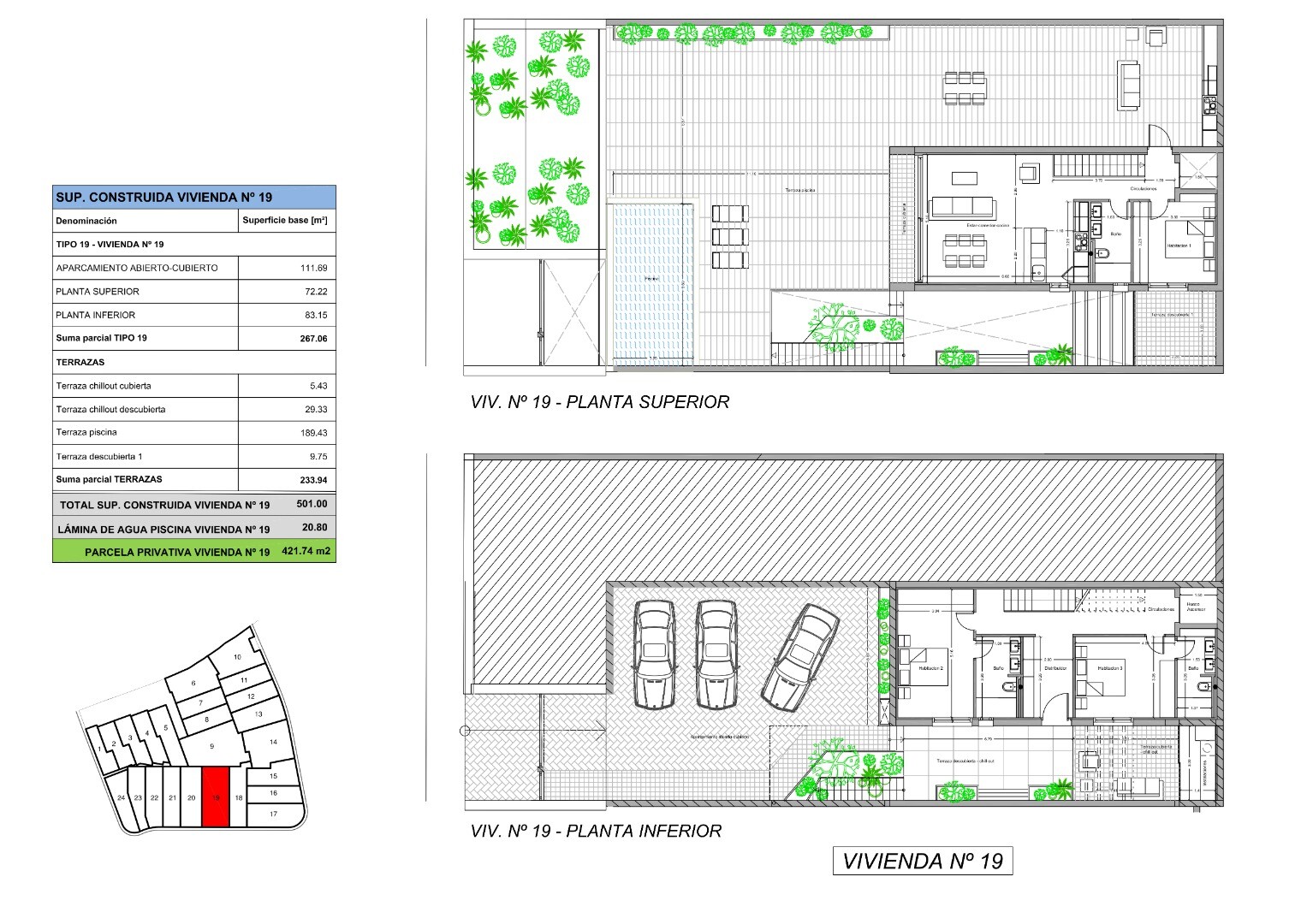 Distribuție Inteligentă: 3 dormitoare spațioase cu baie privată, zonă de spălătorie independentă și parcare pentru 3 vehicule cu încărcare electrică.