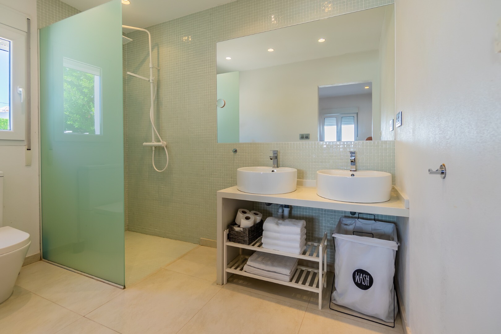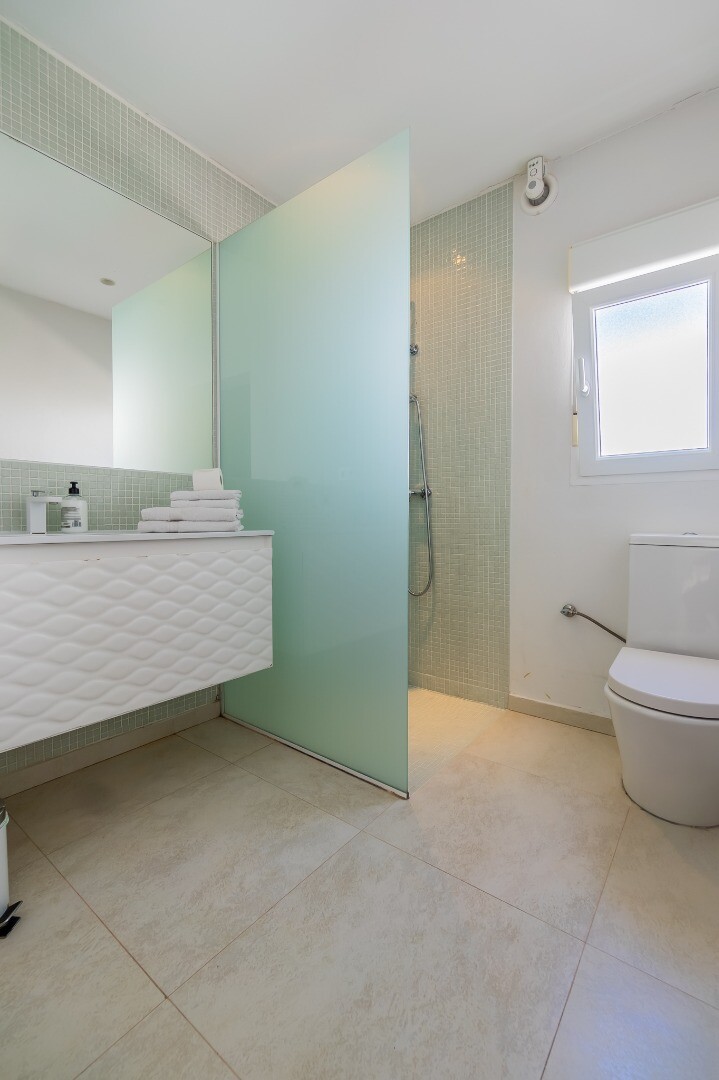 - **Pensiunea:** Situata la nivelul gradinii, accesibila atat interior cat si independent, pensiunea ofera 2 dormitoare cu acces direct in gradina si o baie cu incalzire in pardoseala.