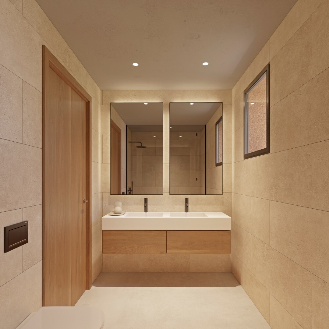 Această vilă oferă un interior confortabil, în care lemnul joacă un rol principal. Acest design se distinge prin separarea clară a zonelor de odihnă de zonele mai active ale casei. La etaj se află cele 3 dormitoare, în timp ce la parter se află bucătăria și camera de zi-sufragerie, care sunt completate de zonele exterioare. Aceste zone, cum ar fi veranda cu zonă de luat masa în aer liber, terasa, piscina și grădinile cu specii native, sunt ideale pentru a vă bucura de climatul mediteranean practic pe tot parcursul anului, conectând casa cu natura.