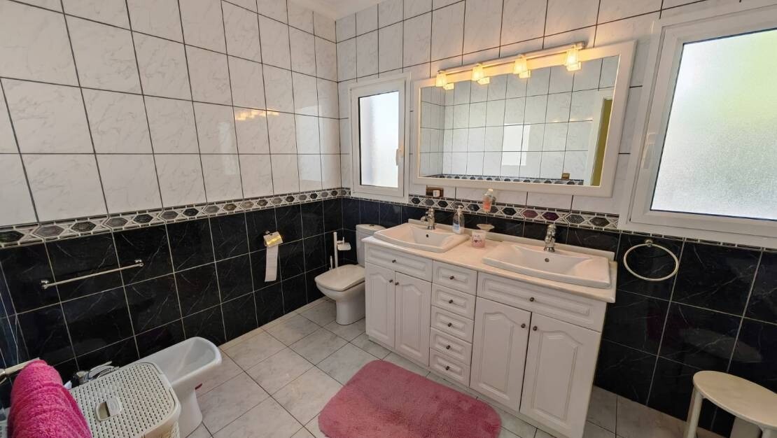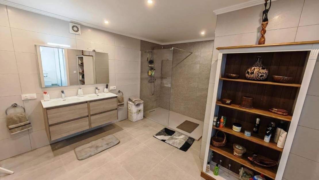 Amplasată pe un teren generos de 1.280 m², această vilă impresionantă oferă spații de cazare spațioase și bine proiectate. Parterul dispune de trei dormitoare mari, fiecare cu baie proprie. La nivelul inferior, există un dormitor separat pentru oaspeți, încântător, cu baie proprie, ideal pentru vizitatori. Proprietatea beneficiază, de asemenea, de ...spațiu suplimentar cu potențial de extindere, ceea ce o face o oportunitate fantastică de a îmbunătăți și mai mult această casă excepțională.