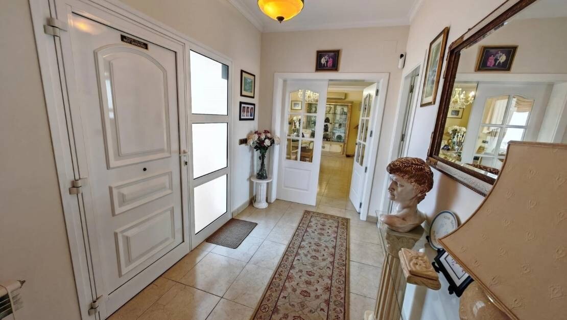 Interioare elegante: Holul de la intrare vă urează bun venit în vilă, conectându-se la bucătăria complet utilată, livingul luminos și două dintre cele patru dormitoare.