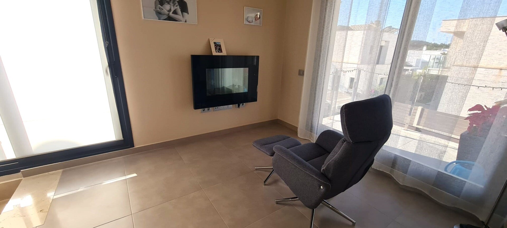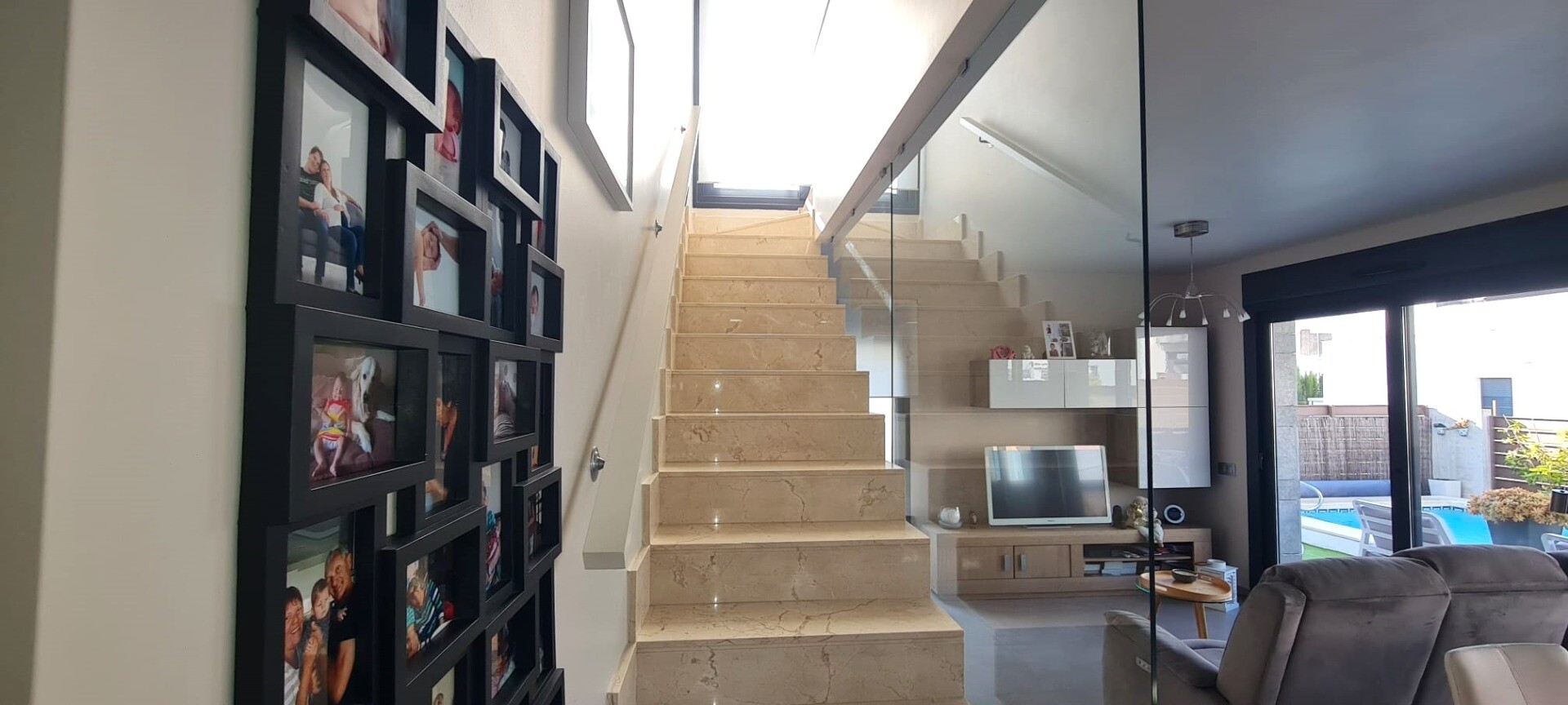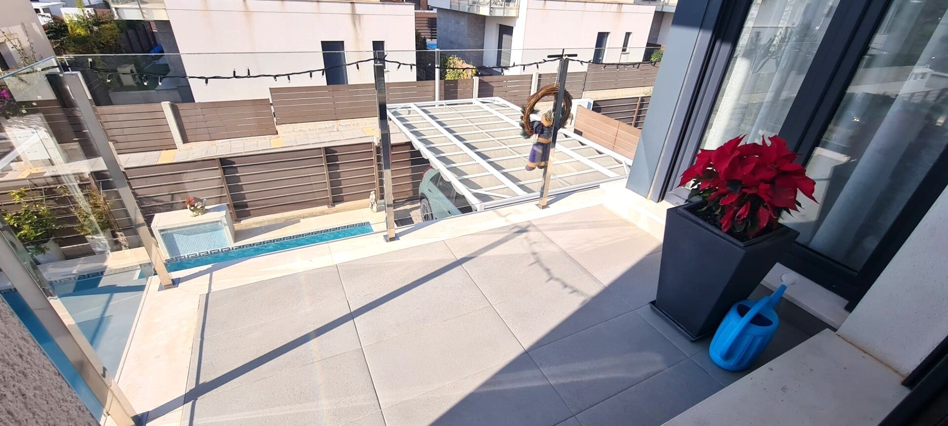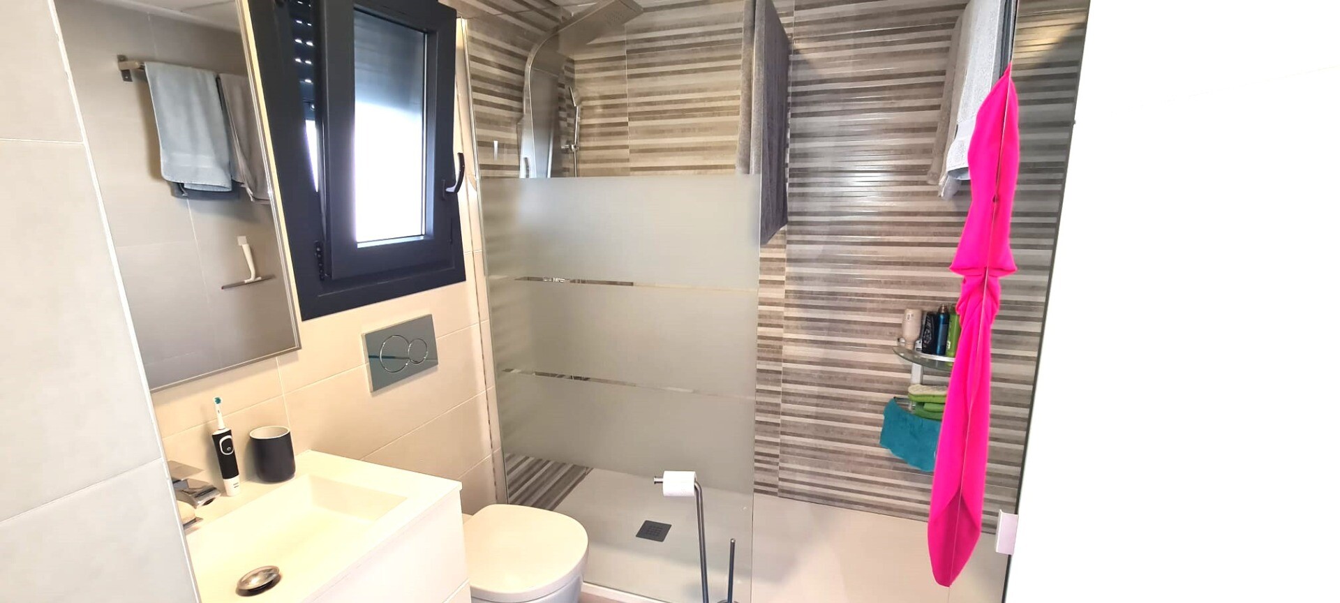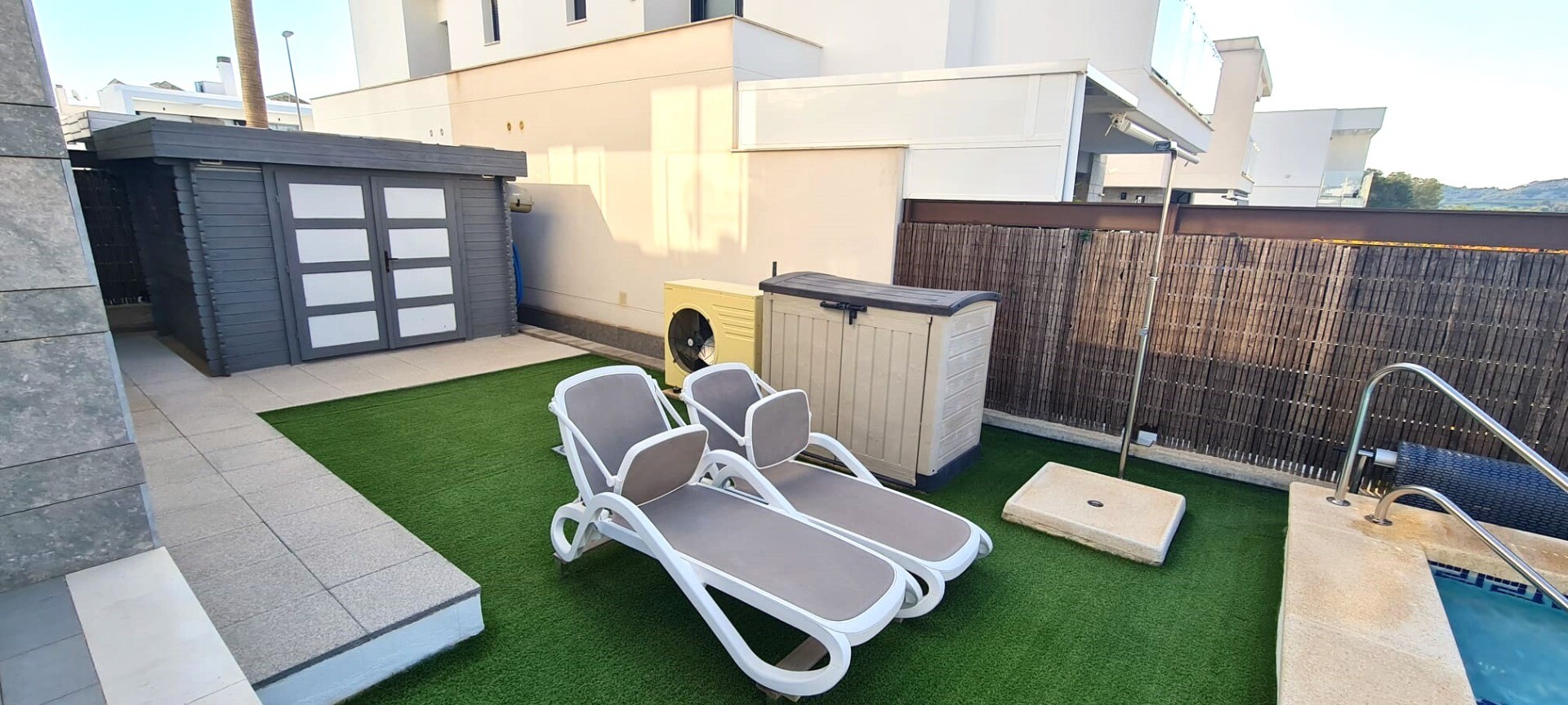 Aceasta vila semidecomandata recenta este foarte unica datorita faptului ca a fost construita cu fatadele din spate atingand intre ele, dand impresia ca este o vila decomandata pe un teren de 217m2. Are o piscina incalzita de 3,5x6,5m. Această casă este dotată și cu panouri solare, așa că plătești foarte puțină energie electrică. Casa se vinde part...ial mobilata. Vistabella Golf ar trebui privit mai degrabă ca un mic Pueblo cu toate facilitățile, cum ar fi bancomat, supermarket, diverse baruri și restaurante, farmacie .... cu avantajul că este o zonă complet securizată, cu 1 intrare și ieșire printr-un post de securitate unde plăcuța de înmatriculare a fiecărei mașini este înregistrată electronic. Costurile pentru securitate sunt suportate integral de Vistabella Golf și de promotorul însuși. De aici există o conexiune fixă de autobuz în fiecare joi între Vistabella și La Zenia Shopping Boulevard. De la Vistabella Golf, toate orașele de coastă din Orihuela Costa sunt la 15 minute de mers cu mașina. La Vistabella se poate ajunge de la aeroportul Alicante pe autostradă (fără taxă) în doar 30 de minute cu mașina.