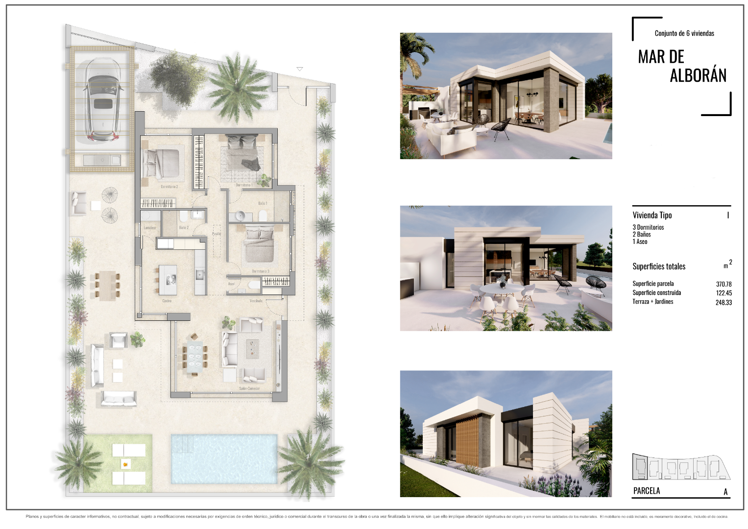 Reședință la scară mică de 6 vile pe terenul de golf Lo Romero din Pilar de la Horadada. Se construiesc 4 vile cu un singur etaj și 2 vile cu 2 etaje. Toate au 3 dormitoare și 2 băi și o toaletă pentru oaspeți. Vilele se livreaza complete cu electrocasnice de bucatarie, A/C si obloane electrice. Gradina este complet finisata cu sistem de irigatii s...i piscina privata de 6x3m.