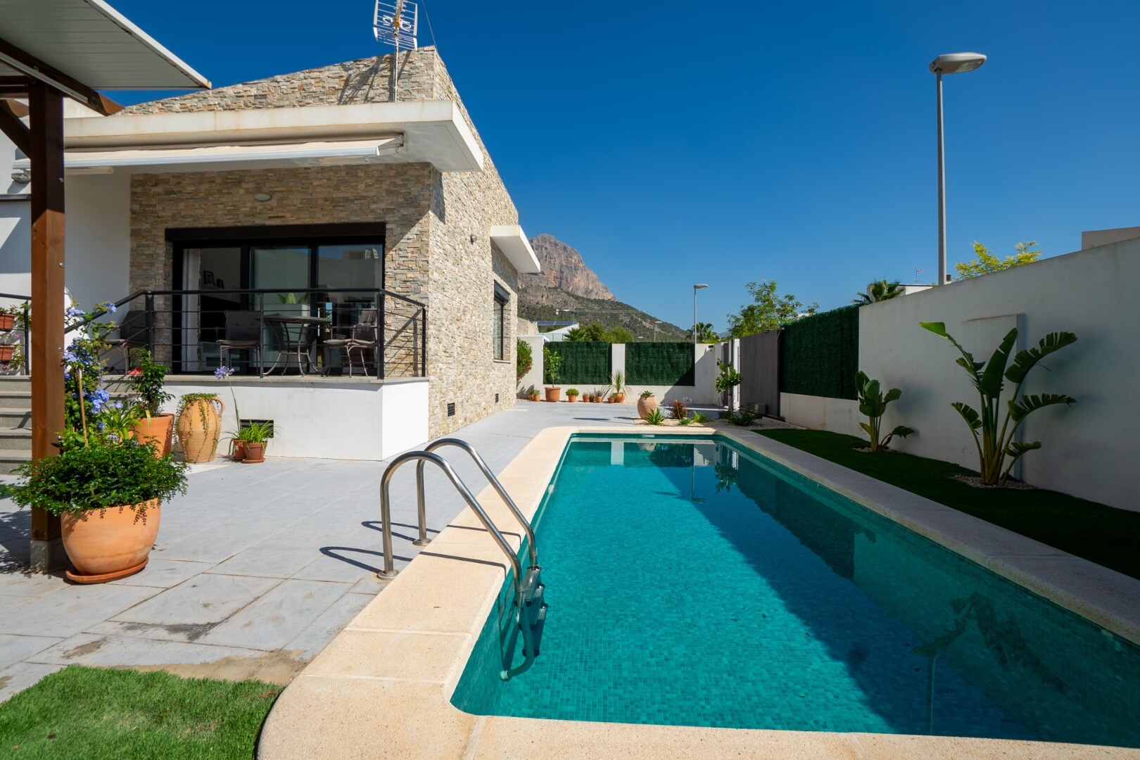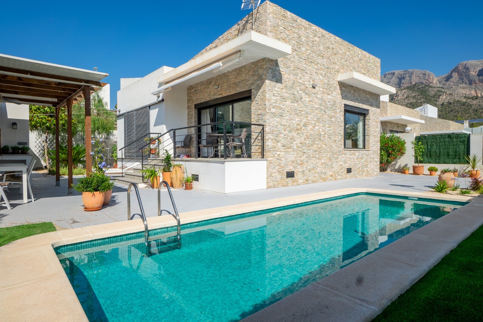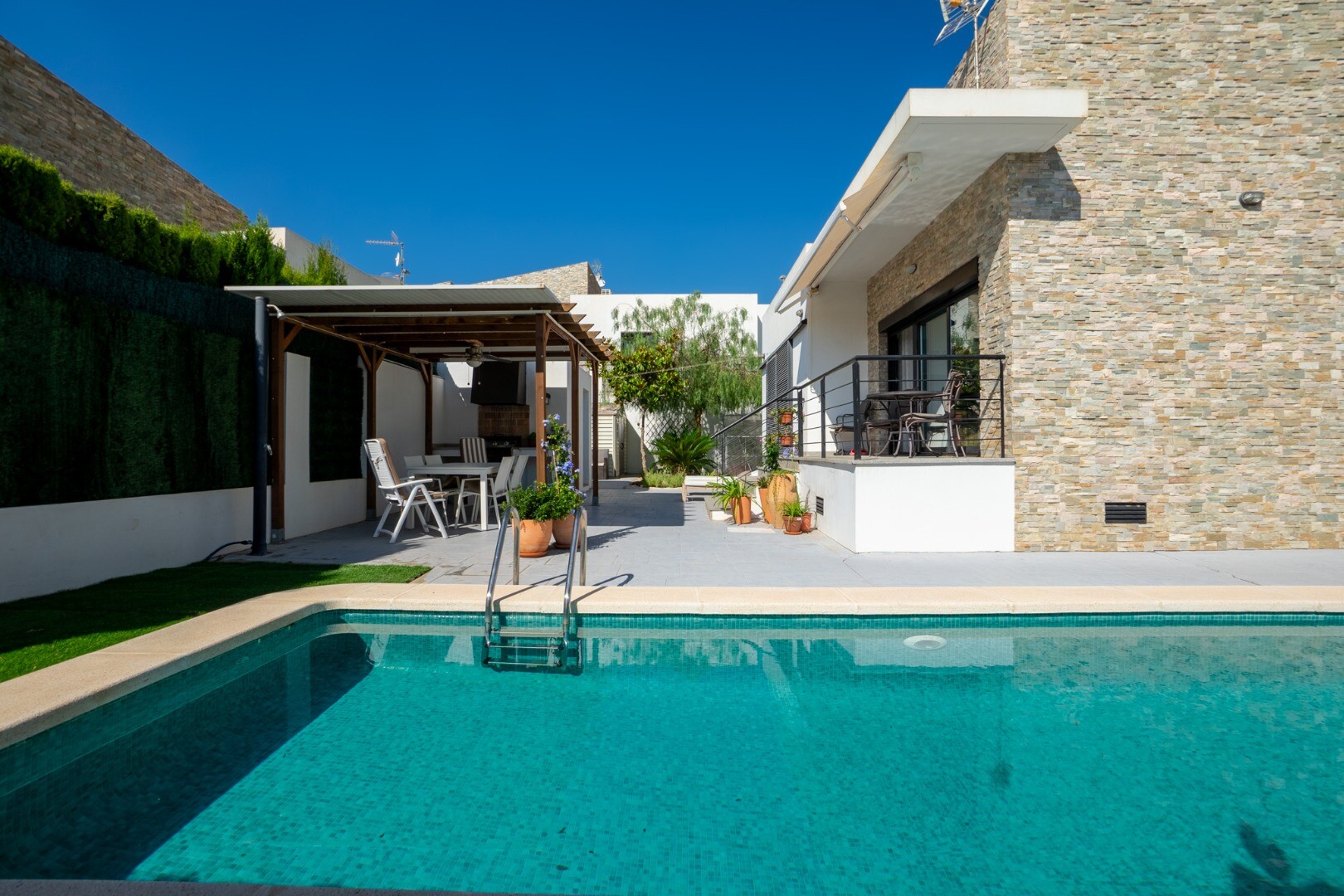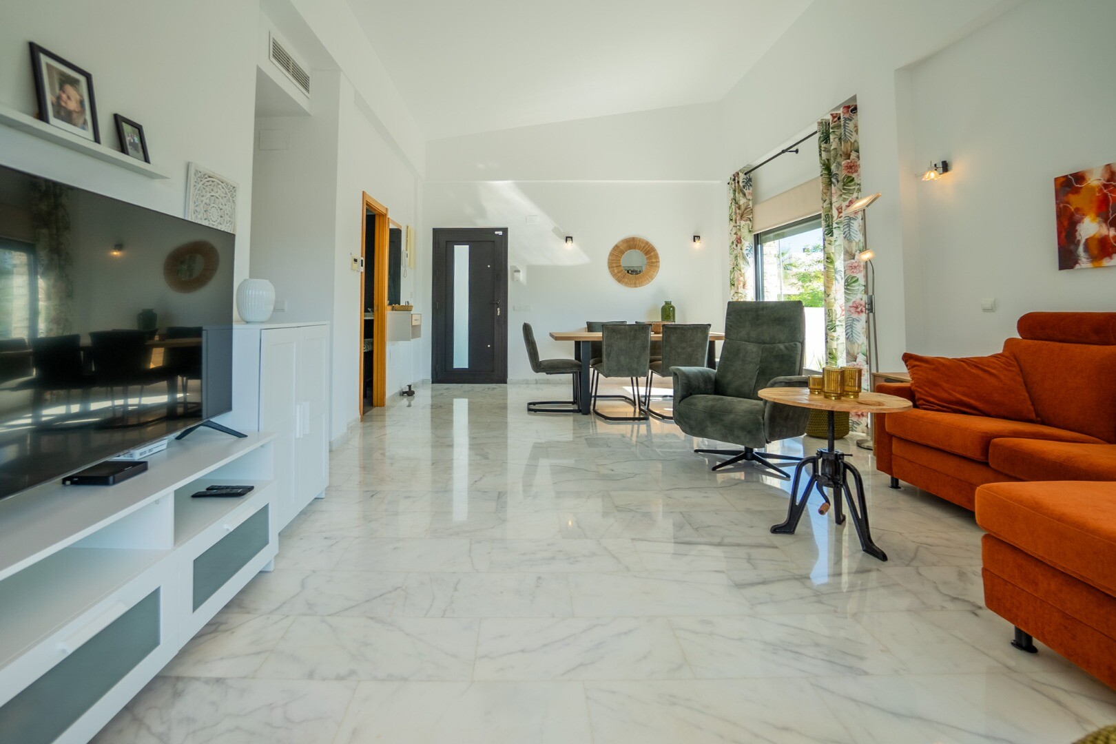 Vilă fermecătoare de vânzare în Polop de la Marina, Alicante, situată într-o zonă rezidențială liniștită din URBANIZARE. Această proprietate la mâna a doua construită în 2014 oferă un mediu luminos și spațios, cu tavane înalte și podele de marmură în toată casa.