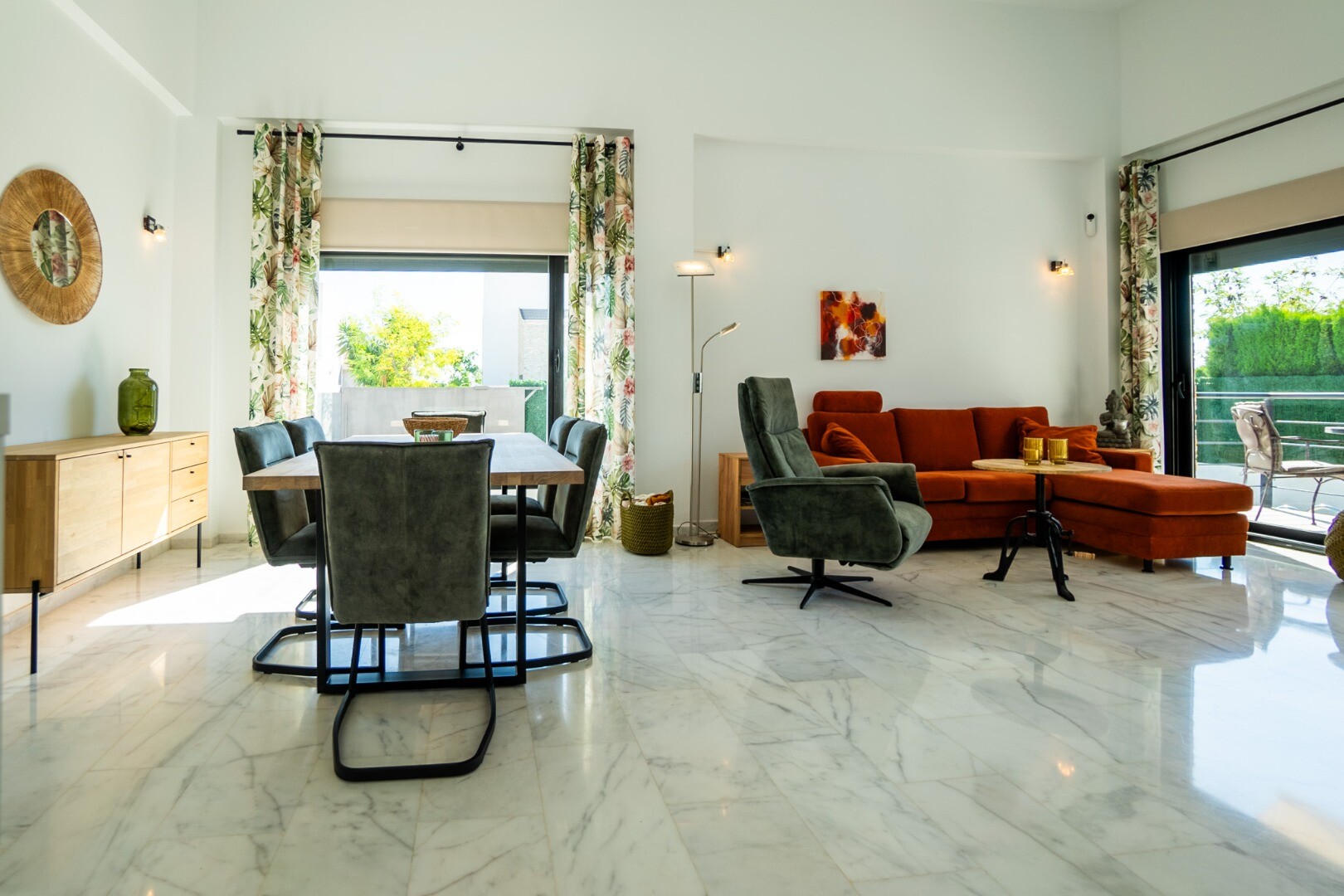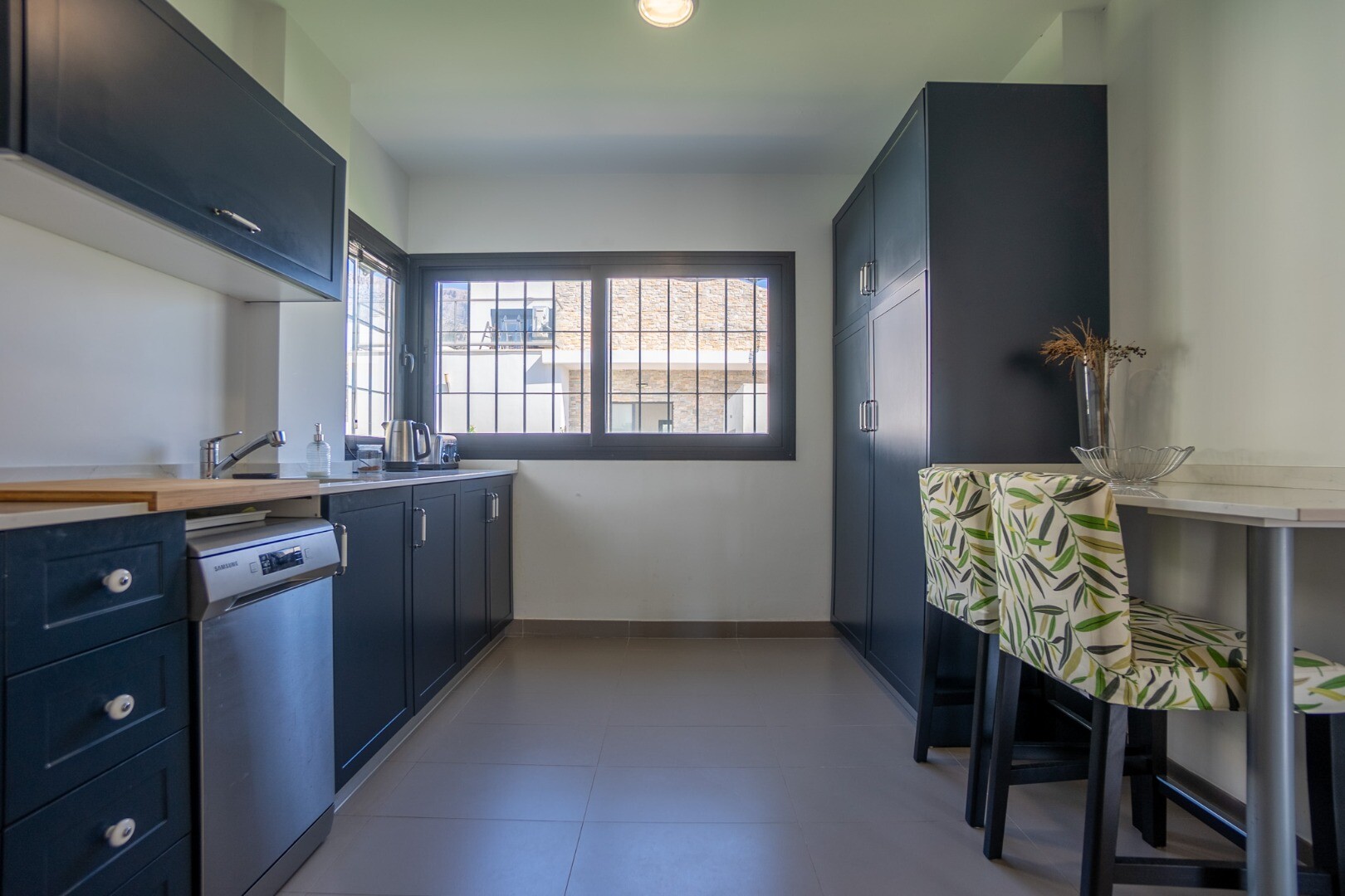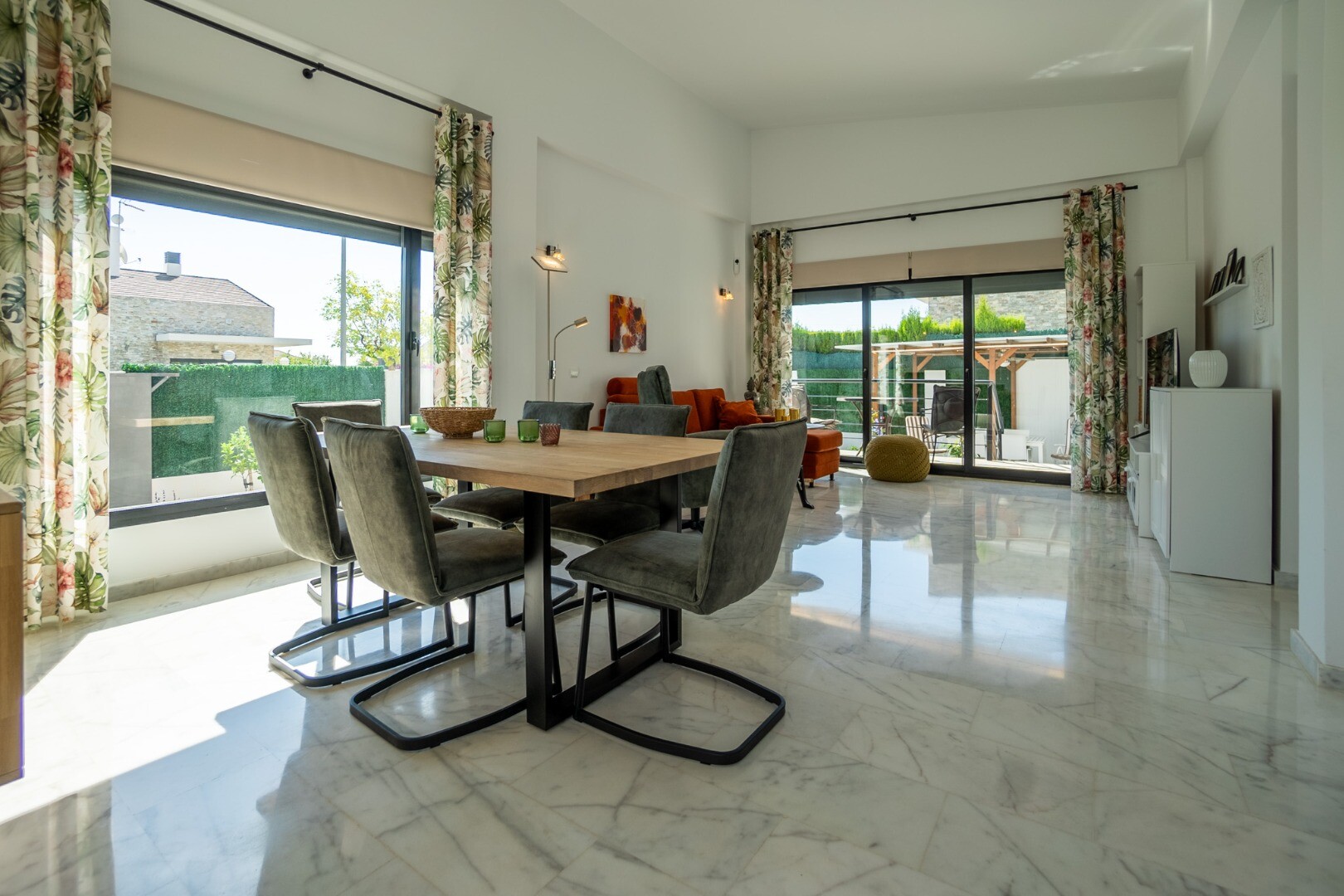 Casa, de 114 mp construita pe un singur etaj, are 3 dormitoare si 2 bai. Dormitorul pr...incipal are o baie privată și un dressing, în timp ce celelalte dormitoare au dulapuri încorporate și împart o a doua baie. Bucătăria independentă, recent renovată și complet utilată, oferă mult spațiu de depozitare și un bar pentru mic dejun.