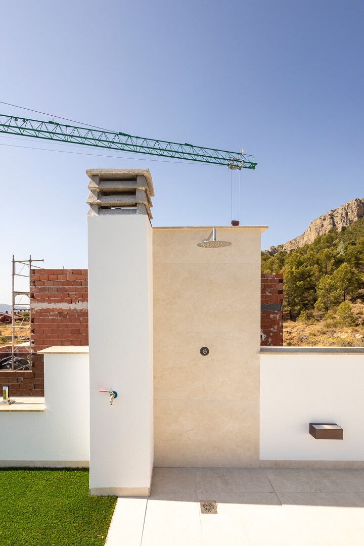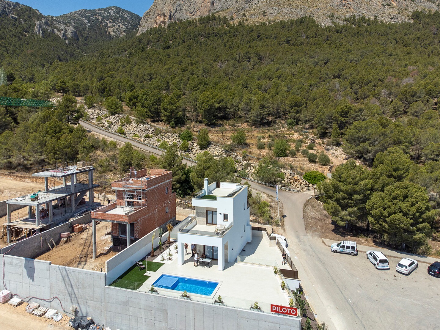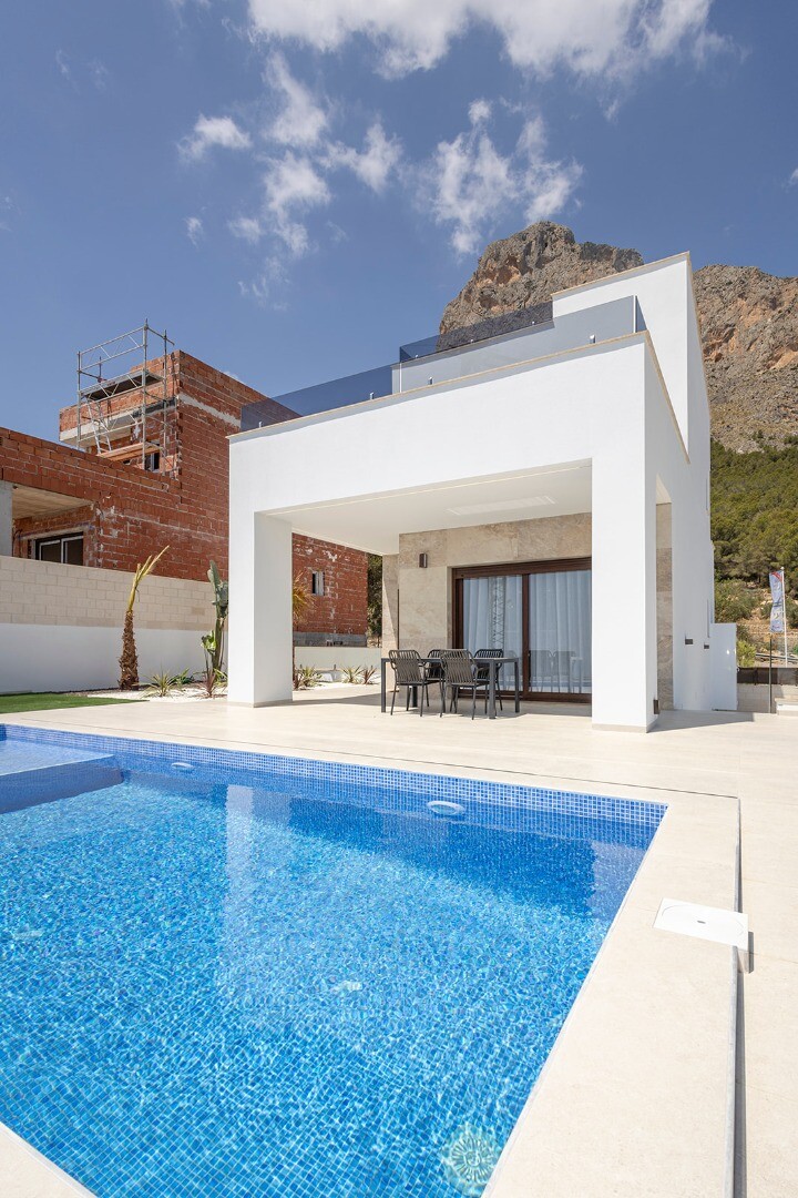 Vilă individuală exclusivă, nou construită, situată într-o zonă rezidențială liniștită din Polop, înconjurată de natură și cu acces facil la plajele și serviciile esențiale de pe Costa Blanca.