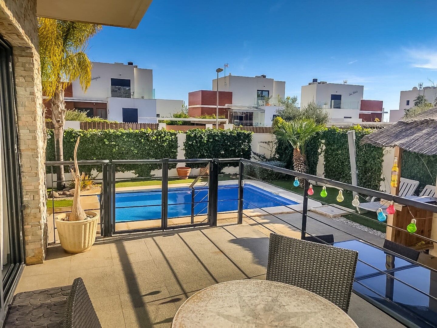 Această vilă modernă este situată într-o urbanizare liniștită din Polop și se află pe un teren de 400 m², cu o piscină privată, grădină cu întreținere redusă și o zonă confortabilă de grătar - perfectă pentru viață în aer liber.