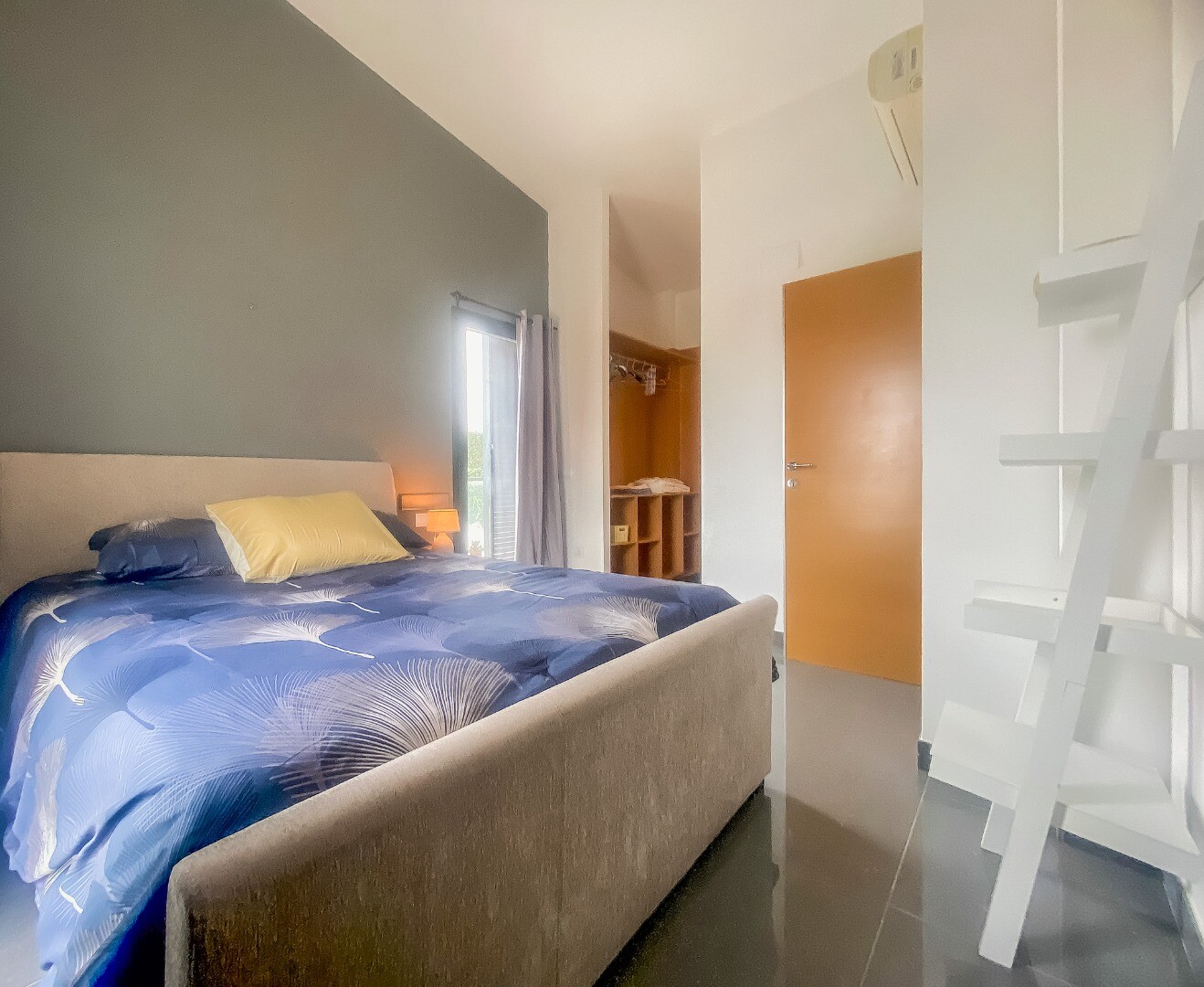 - Etajul superior este dedicat dormitorului matrimonial cu baie privată, oferind intimitate și vedere deschisă.