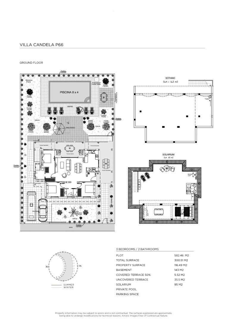La exterior veți găsi o grădină privată cu piscină (8x4m), unde vă puteți relaxa și vă puteți bucura de clima mediteraneană. In plus, vila dispune de un subsol mare care poate fi un spatiu multifunctional ce poate fi mobilat in diverse scopuri, precum o sala de recreere, o sala de fitness si/sau o camera de depozitare.
