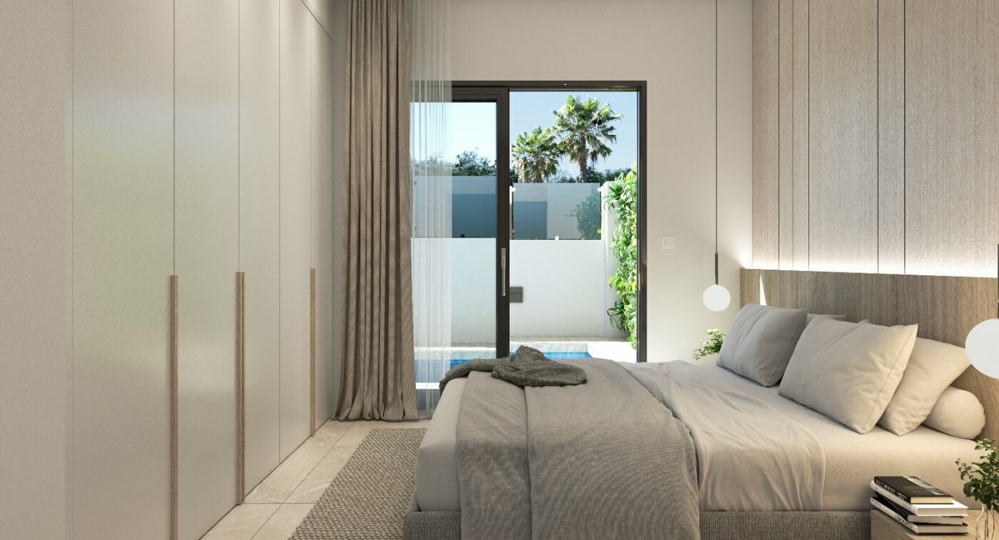 Proprietatea este dotată cu aer condiționat pe ambele etaje pentru confortul dumneavoastră în toate anotimpurile. Exteriorul vilei include o grădină privată cu piscină și un loc de parcare, oferind un mediu ideal pentru a vă bucura de climatul mediteranean.
