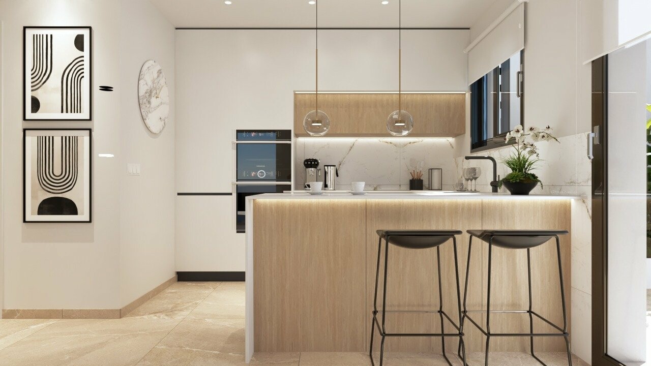 Vila are 3 dormitoare, toate cu dulapuri montate, și 3 băi cu încălzire prin pardoseală, garantând confort și lux. Bucătăria open space se... integrează perfect cu livingul, creând un spațiu deschis și primitor pentru viața de zi cu zi și pentru divertisment.