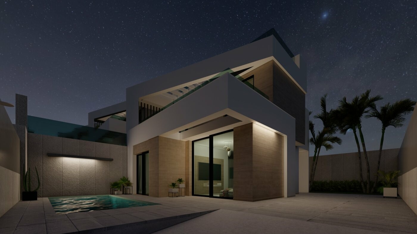 Situată în urbanizarea Blue Lagoon, aproape de prestigioasele terenuri de golf Las Colinas și Campoamor, această vilă nouă din San Miguel de Salinas oferă o suprafață construită de 104 m² pe un teren de 300 m².